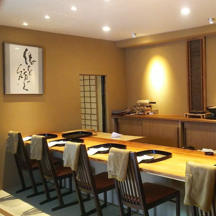 落ち着いた和の空間を有する【藤かわ】。夜は静かな大川沿いの天満橋近くに当店はございます。老舗高級料亭や一汁二菜うえのなど、和食の名店で修行を積んだ店主・藤川氏が、時季によって旬の素材を活かした逸品をお作りしております。自信をもって供する四季感じる料理や、目の前で揚げる天ぷら、それらの魅力を引き出す器、全てにこだわる藤かわが舌で味わい、目で見て楽しむ、五感を刺激する美食時間をお届けします。