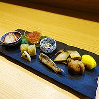 四谷三丁目駅より徒歩3分。荒木町に暖簾を掲げる「懐石 大原」。茶懐石の名店として知られた「和幸」で12年間修業をした大原誠氏が営む店です。カウンター席とテーブル席があり、完全予約制で落ち着いてお過ごしいただけます。季節の懐石コースは、毎朝豊洲へ赴いて仕入れる良質な食材を使い、器までこだわった美しい品々を提供。多様な味・食感を組み合わせて次々と口を魅了する八寸や、予約時間に合わせてダシを取る吸物など、一皿一皿から氏の実直な仕事ぶりが見事に感じられます。
