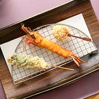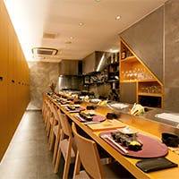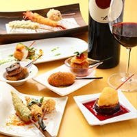 ただ美味しい串揚げを提供するだけでは満足してもらえない時代に、お客様に喜んでいただけるよう「和・フレンチ・イタリアンの融合」と「独創性」への想いを込めて、今までにないまったく新しい串カツをご提供いたします。お好きなタイミングでストップできるおまかせコースから、デザートまで愉しめる宴会コースなどご用意しております。揚げ油は米油を使用し、パン粉には素材に合わせて桜エビや柿ピー、香草などをアレンジしています。しっとりと落ち着いた和モダン空間で、進化系創作串揚げを味わうひと時をお愉しみください。
