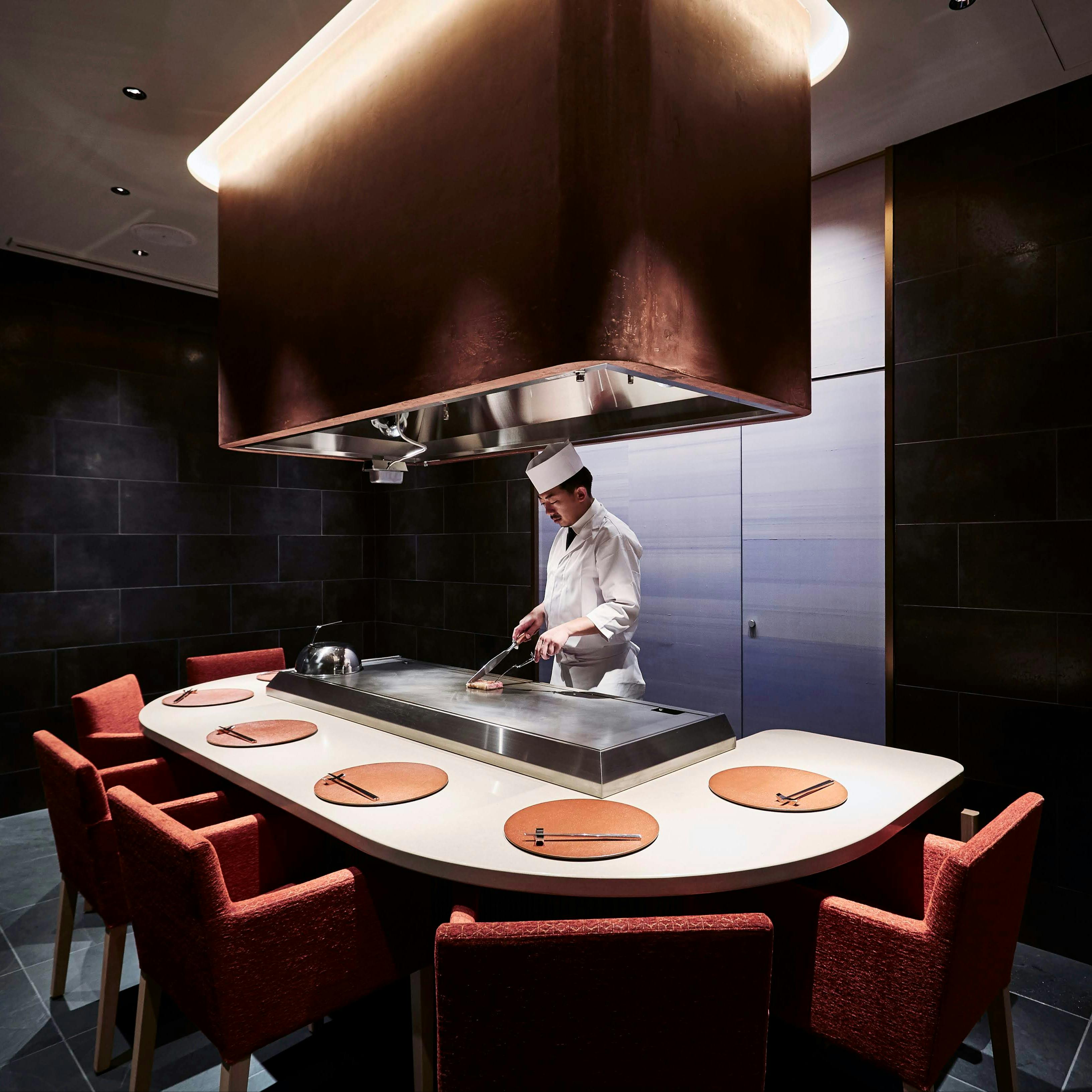 東銀座駅、歌舞伎座すぐの好立地。三井ガーデンホテル銀座五丁目2Fのメインダイニング「SHARI(鉄板焼みたき)」。 国際都市東京の銀座に店を構え、世界のWASHOKUを発信する当店は、目にも麗しい色とりどりの新和食と、高級鉄板焼を中心にラグジュアリーな大人のための新創作和食をお愉しみいただけます。 厳選された四季折々の食材を使用してつくる創作和食の「SHARI」と、国産牛を使用した高級鉄板焼や和食の概念を新たにするお料理の数々を目の前で愉しめる「鉄板焼みたき」。2つのエリアで思い出に残る素敵なひとときをお過ごしくださいませ。