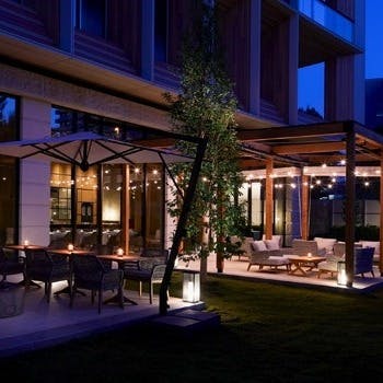新国立競技場目の前「三井ガーデンホテル神宮外苑の杜プレミア」メインダイニングです。日本の「粋」がコンセプトのモダンイタリアンをご提供。東京とは思えない緑に囲まれたオープンテラスと開放感のあるラグジュアリーな空間でお愉しみください。高級食材や季節の食材と調味料や調理方法、様々な種類の肉や魚介に合わせ焼き上げた薪と炭火のグリル。お好みの選べるパスタやメイン、デザートなど圧倒的なコストパフォーマンスでご提供いたします。