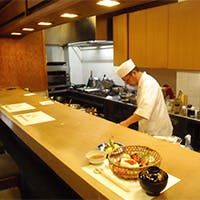 当店は、基本的に京風のカウンター割烹スタイルで、お客様の様子をうかがいながら一品ずつお料理をお作りします。お料理は、おまかせ料理7品程度とお食事、水物が基本のコースでご提供いたします。味付はお客様の様子を見ながら好みに合わせて、関西風 から名古屋風まで味を変えさせて頂いております。色鮮やかな盛り付けは、四季の味覚だけでなく色彩さえもお楽しみいただけます。店主が料理の道に入り、地元名古屋に店をオープンしてから早27年目を迎えますが、これからも期待にお応えできますよう、料理への精進を心掛けて参ります。