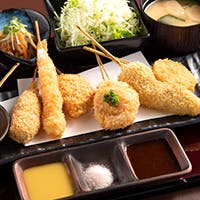 「串亭 ルミネ池袋」は、JR池袋駅徒歩1分、ルミネ池袋のレストランフロアにあります。臨場感溢れるゆとりのカウンター席と落ち着いた個室のコンビネーションで串揚げの美味を深めています。