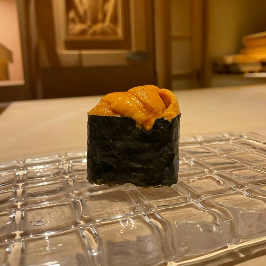 当店では、築地で仕入れたこだわりの厳選食材を使用したお鮨をご提供しております。ネタに合わせる酢飯は、魚介に合わせて2種類を使い分けており、1つは一種類の赤酢のみを使用したもの、もう1つは鮪専用で二種類の赤酢を配合しています。また、食材が持つ味わいの特徴を最大限に引き出せるよう、酢飯の大きさも変えております。