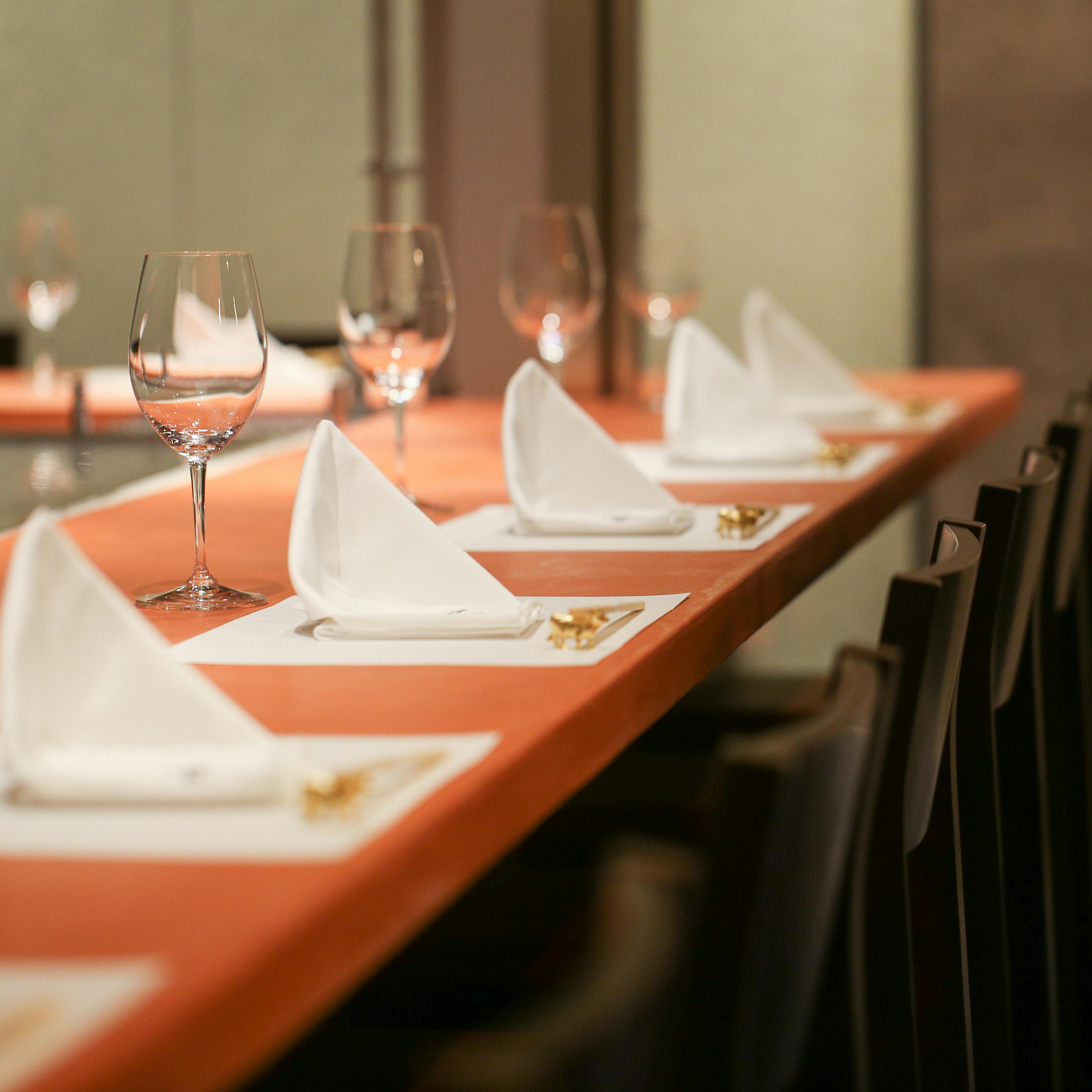 尾崎牛にふさわしいシックで落ち着いた空間をご用意しております。調理のライブ感を味わうカウンター席、お祝い事や接待などにご利用いただける半個室など、シーンに合わせてご利用ください。