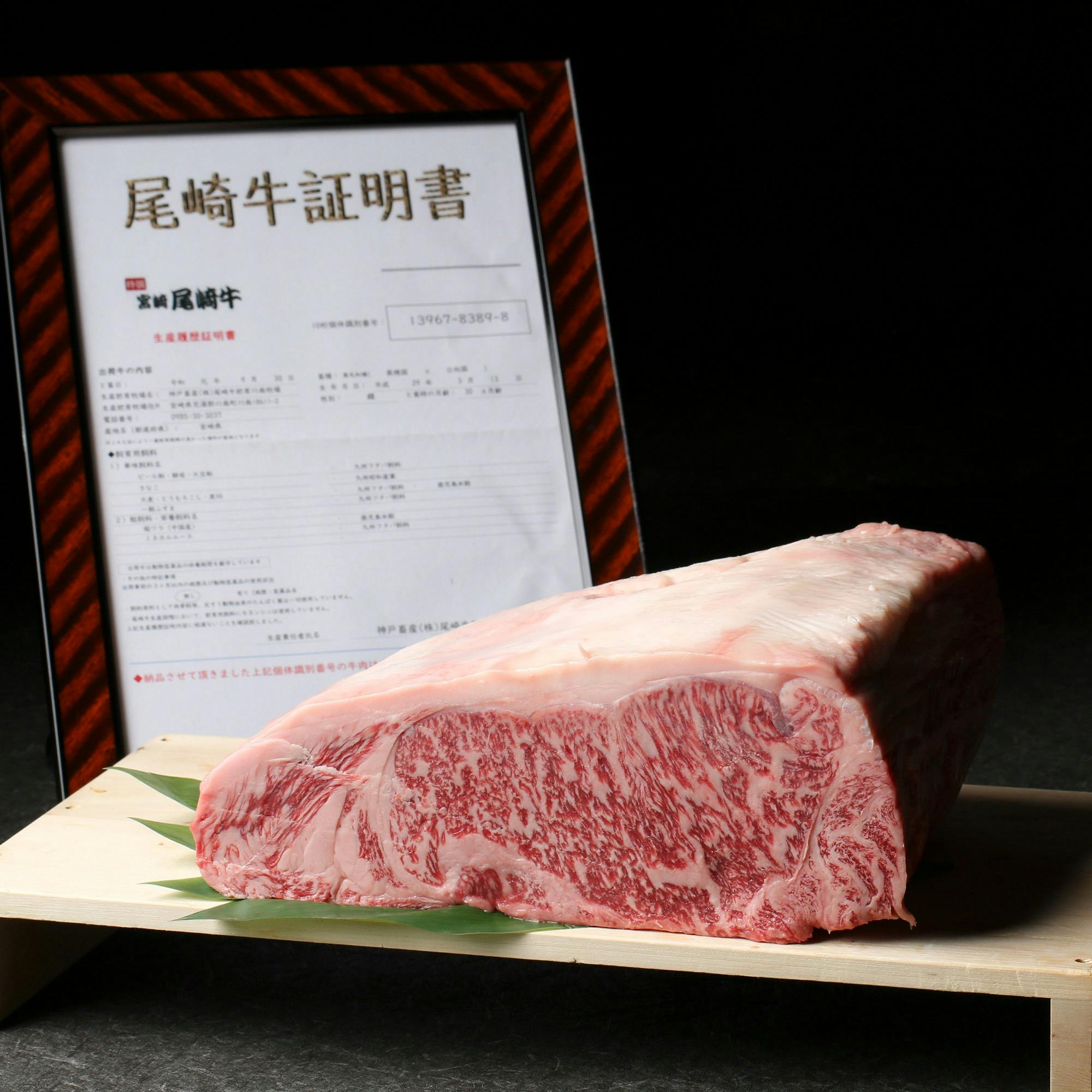 尾崎牛は赤身が特徴でございます。柔らかさと旨味、そして脂身がしつこくなく、胃がもたれることなく最後までご堪能いただけます。月に30頭しか出荷されない幻の『宮崎尾崎』のみを贅沢に使用したコースや、様々な部位の逸品をご用意しています。