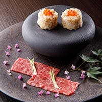 “食を通して人生を豊かにする”をコンセプトに、A5ランクの黒毛和牛をメインとした選りすぐりの素材で描かれる、贅沢な焼肉をお愉しみいただけます。希少部位を惜しげもなく使用し、様々な演出を散りばめた逸品が、お客様の五感を魅了いたします。お肉のみならず厳選した食材、スタイリッシュな空間、スマートなサービス、ワンランク上のおもてなしと共に、食を通して幸せな気持ちになれるひと時をお愉しみください。