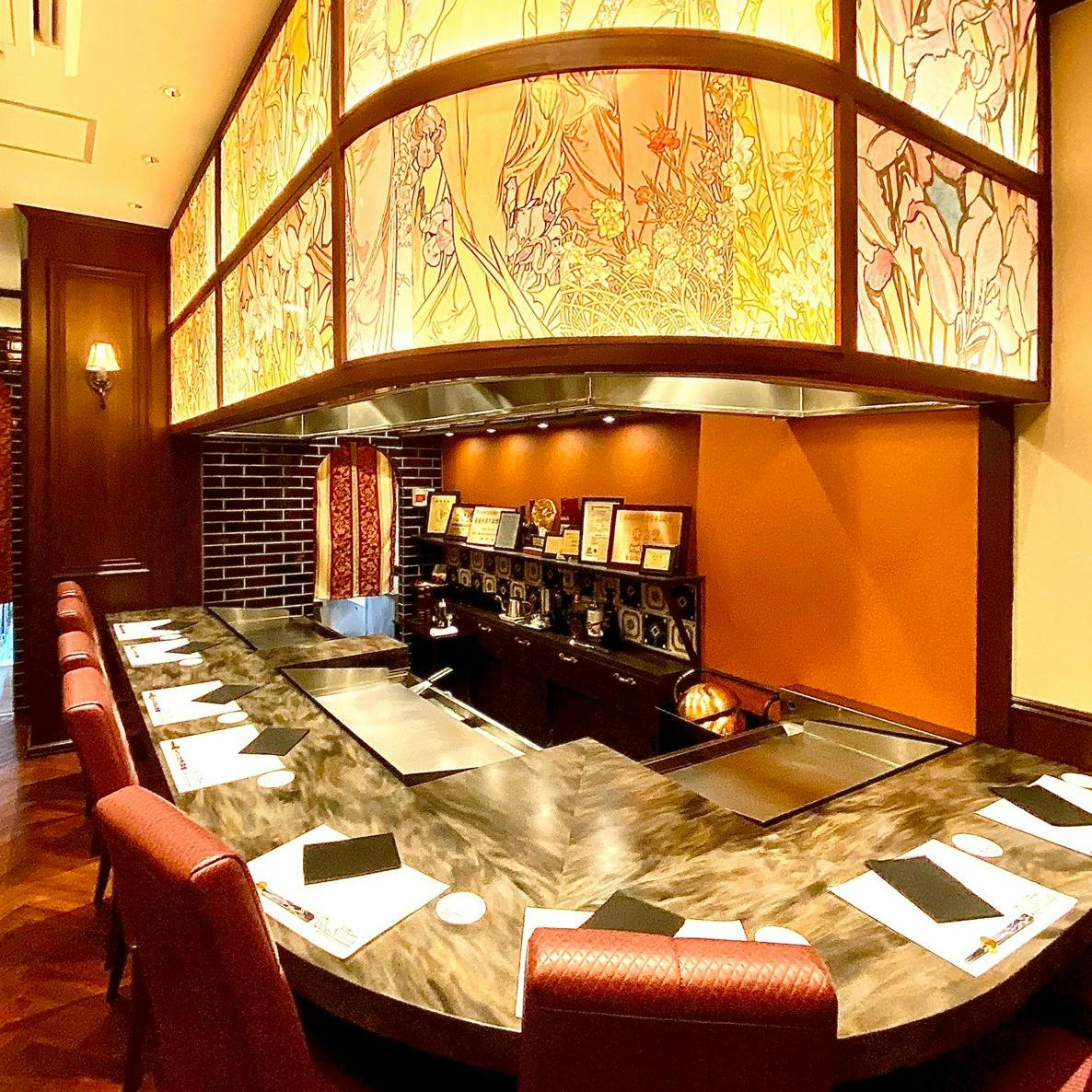 店内はほどよい高級感とカジュアルさを意識した造りとなっており、日常使いからデートや特別な日、接待など幅広いシーンに対応できる内装となっております。また、鉄板コーナーを併設しているため、特別な記念日や誕生日などには、目の前で焼き上げる鉄板ステーキコースや、テーブル席にて本格的なシェフおまかせのフレンチコースをご堪能いただけます。ぜひ、目と舌でお愉しみください。