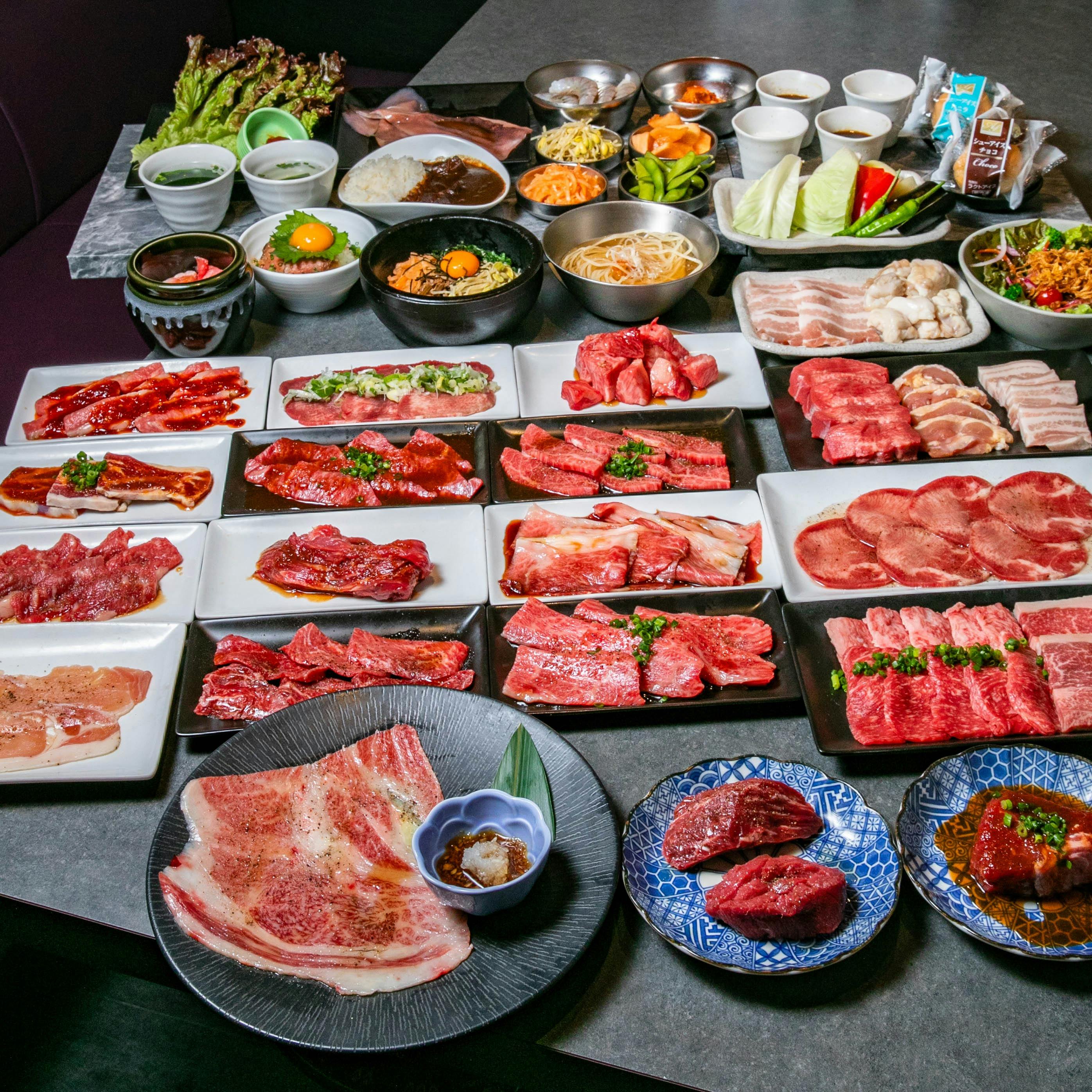 品質や鮮度はもちろん、提携牧場から直送の宮崎牛(A5ランク)や佐賀牛など、職人が一つひとつを目で確かめ、肌で感じて選りすぐった九州各地の厳選素材をご堪能ください。1階は完全個室、2階は最大100名様までのご宴会にもご利用いただけます。“厳選された食材 ”と“洗練されたおもてなし”で大切な人とのひと時をお過ごしください。