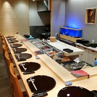 都会の喧騒から離れた静かな場所に位置する当店では、鮮度にこだわった旬魚をお鮨や和食でご堪能いただけます。当日の朝に水揚げされ、昼の競りで買い付け、そのまま店頭のいけすに運ばれるため、新鮮さは折り紙付きです。また、お料理のほか日本酒や焼酎、ワインなども選りすぐりのものをご用意しております。上質な雰囲気の店内で大切な人と会話を弾ませつつ、至福のひと時をお過ごしくださいませ。