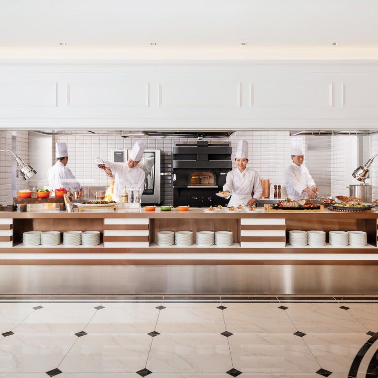 ビュッフェ 【朝食】7:00~10:00(L.O.9:30) 【ランチ(90分制)】11:00~16:00(L.O.15:00) 【ディナー(120分制)】17:00~21:30(L.O.21:00) アラカルト 11:00~21:30(L.O.21:00)
