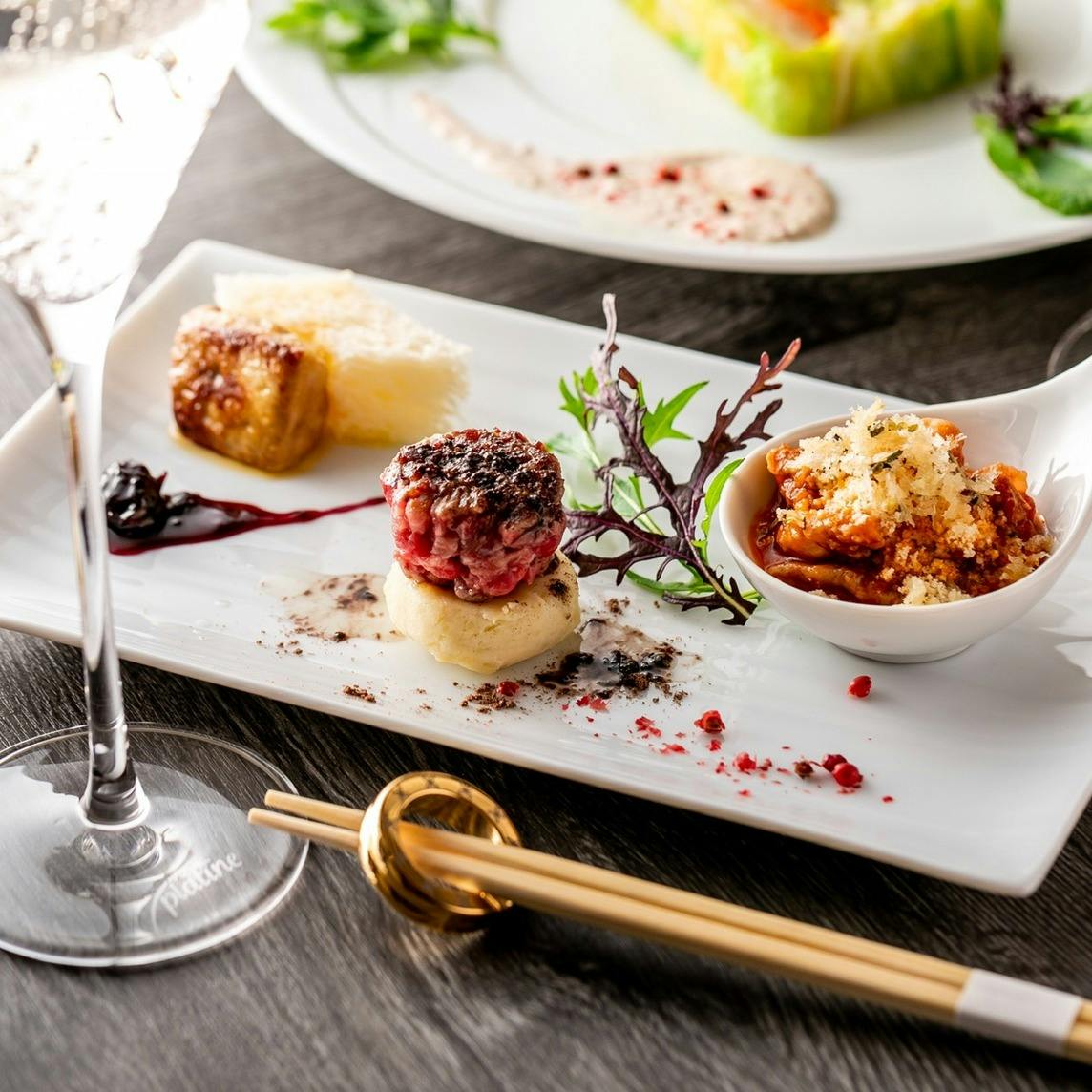 【2025Christmasコース】 A 5ランク黒毛和牛のシャトーブリアンは厳選された雌牛のみでご用意、また濃厚なブイヤベース仕立てのソースで堪能する伊勢海老にクリスマス限定デザートあまおうのミルフィーユやジェラートの盛り合わせをお楽しみ下さい。