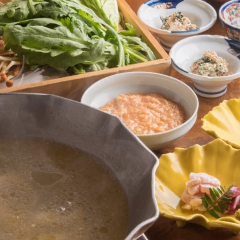 築100年以上の古民家を改装し、和の情緒あふれる空間が広がる【一木庵】。日頃の喧騒から離れた非日常的な空間で、くつろぎながら食事をお愉しみいただけます。個室に足を踏み入れれば心安らぐ和の香り。こだわりの料理は『水炊きコース』で。鶏ガラを時間をかけて丁寧に煮込んだ特製スープ。新鮮な鶏肉、季節の野菜を炊けば、素材が持つ本来の魅力を味わうことができます。日本酒は、旬のものを中心としたラインナップ。ぜひ合わせてお愉しみください。