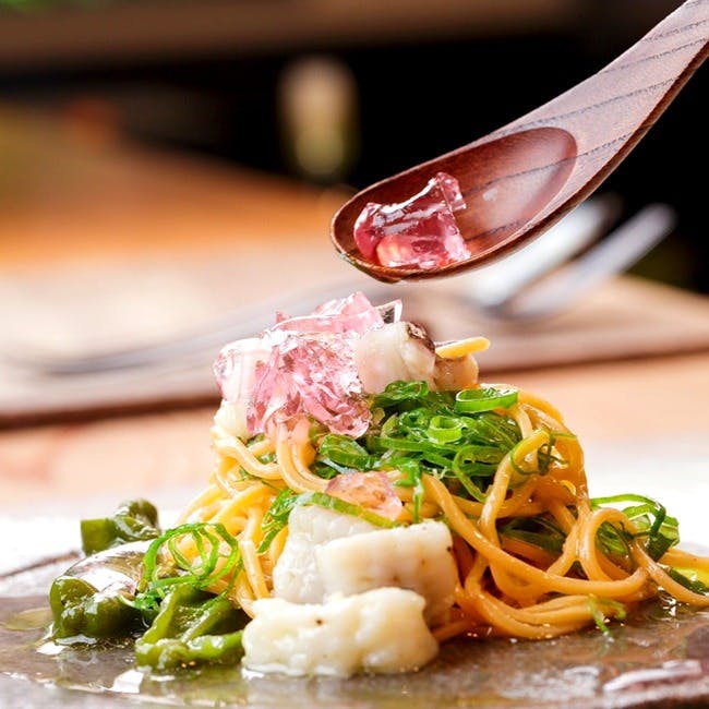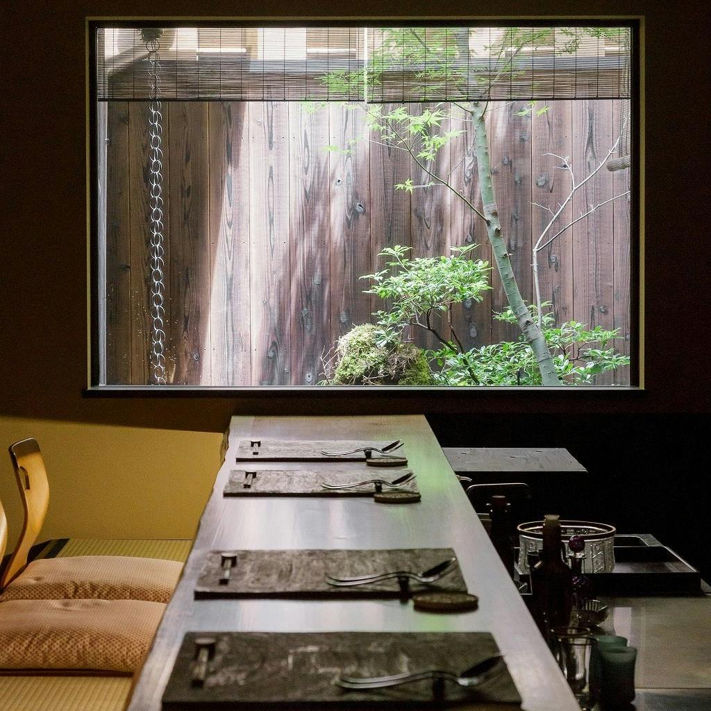 京都御所の北東に佇む当店では、自然に寄り添い、素材へ向き合い、一皿一皿に想いを込めてお料理を提案しております。店名には【想い・添う・創る・奏でる・素材・六窓】の6つの【そう】を大切にするという、私たちの想いが反映されております。ゆったりと時間を過ごしていただけるイタリアンをコースで提供しておりますので、安らぎを得る至福のひと時をお過ごしください。