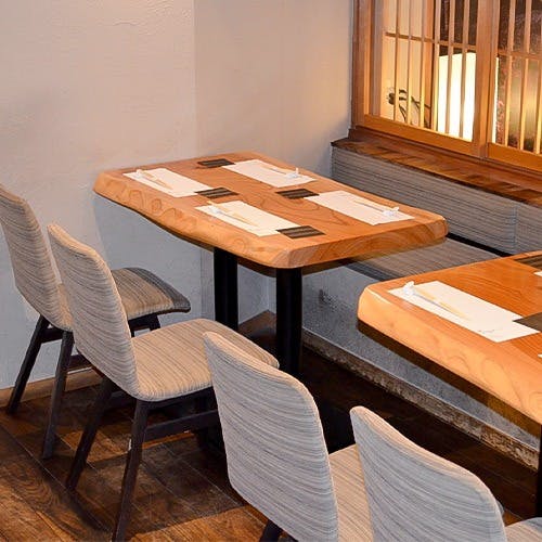 北野坂の真ん中に位置する創作料理屋。暖簾をくぐり地下に降りると木のぬくもり溢れる空間。モダンな木製カウンター席が10席、ゆったりとしたボックス席が8席ございます。仕事終わりの一杯、デート、ご友人の集まりなどお好みのシーンに合わせてご利用下さいませ。