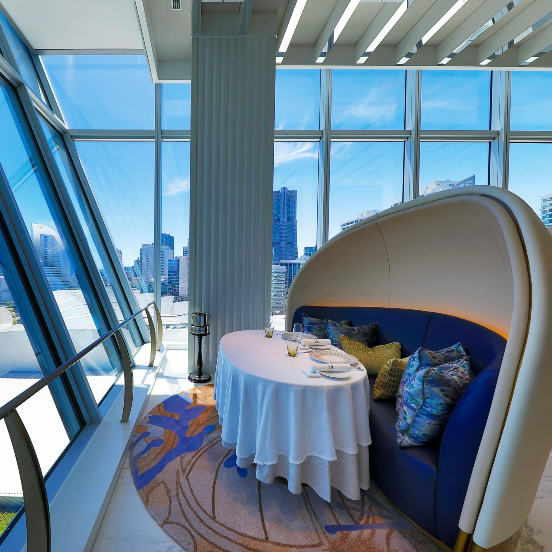 温かみのあるゴールドに柔らかな色彩を組み合わせたグラマラスで独創的なイタリア料理レストラン。貝殻に包まれた造形のテーブル席は、開放的でありながらプライベート感も演出。現代アートのようなモダンな空間で落ち着いた時間を過ご せる個室もございます。