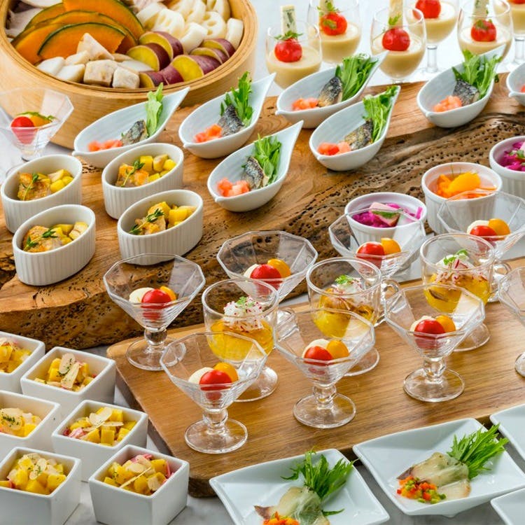 ホテルアソシア静岡1Fにある「パーゴラ」。「Farm to table」をコンセプトに、静岡県産の食材などを使用した料理人自慢の多彩なブッフェをお届けします。素材にこだわり見た目も華やかなメニューに心躍るはず。目の前で仕上げるパフォーマンスにも注目です。