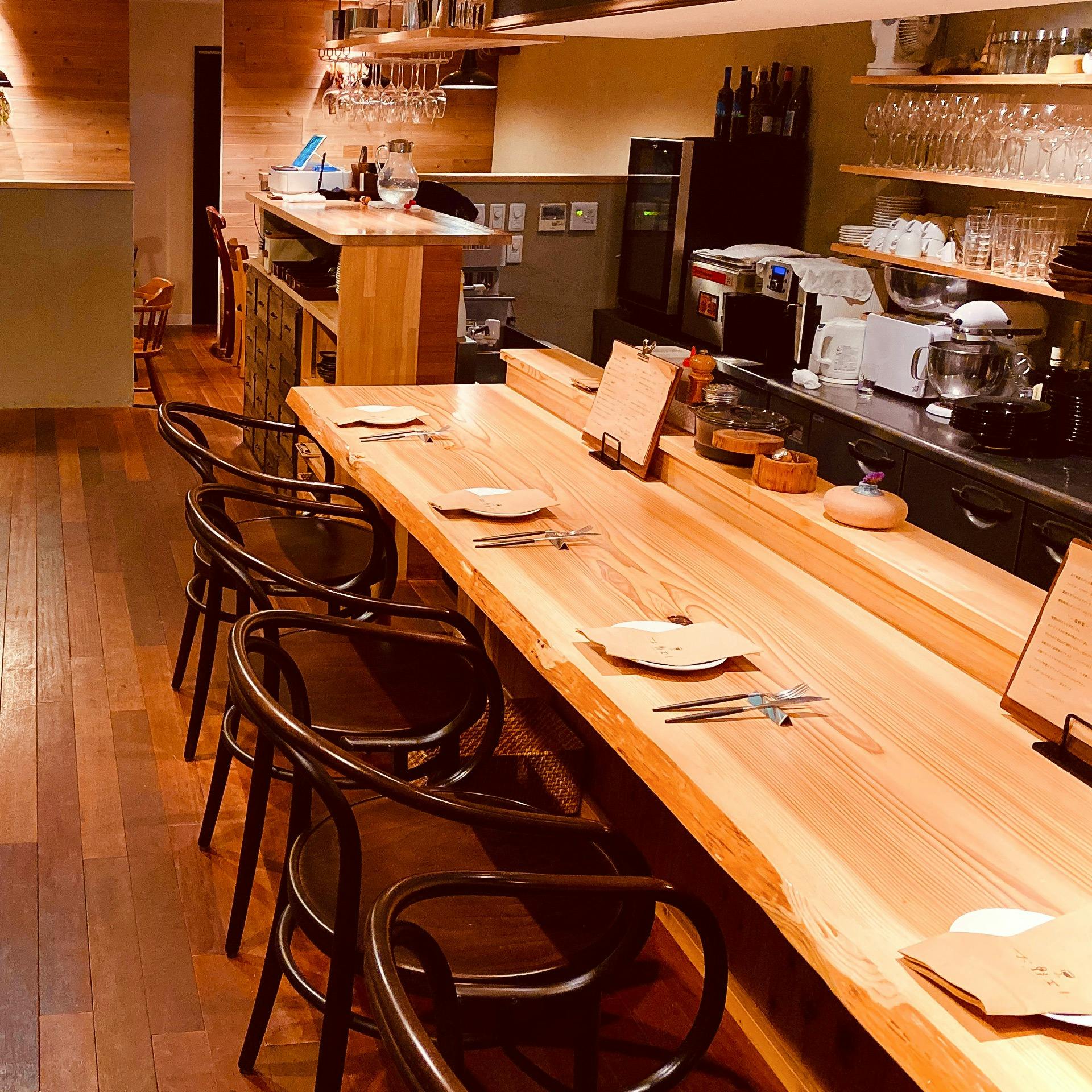 無農薬栽培農家のタケイファーム直送の“季節を感じる有機野菜”と“ソムリエ厳選の自然派ワイン”が楽しめる「ビストロ お野菜と.」。“来るたびに新たな出会いを楽しんでもらいたい”という店主の想いから、その日仕入れた旬の食材を一番美味しく食べられる調理法で、素材の旨味を引き立たせた独創的なひと皿をご提供いたします。