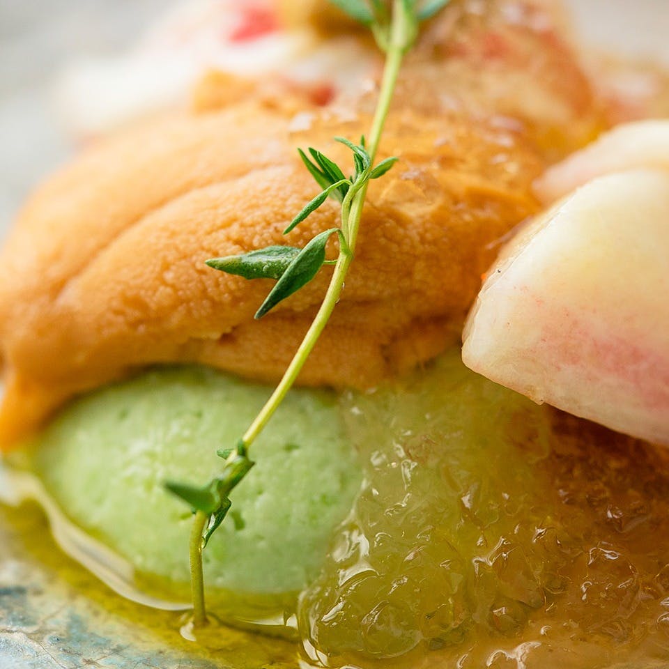 2009年からミシュラン三ツ星を取り続ける『石かわ』。その店主・石川秀樹氏は、『蓮 三四七』『虎白』『波濤』など、予約の取れない店を次々と生みだしてきた。そして今度の新店には外歳という若き料理人・角谷健人氏を抜擢。そんな角谷氏が店主を務める『NK』は石川グループ唯一の洋食のベテランシェフ高橋七洋氏とタッグを組んだ新店。和の手練によるこの新店は、誰もが予期せぬ料理で心を躍らせることでしょう。和食をベースに洋食や中華の要素も取り入れた、若き店主のオリジナリティ溢れる逸品をお愉しみください。