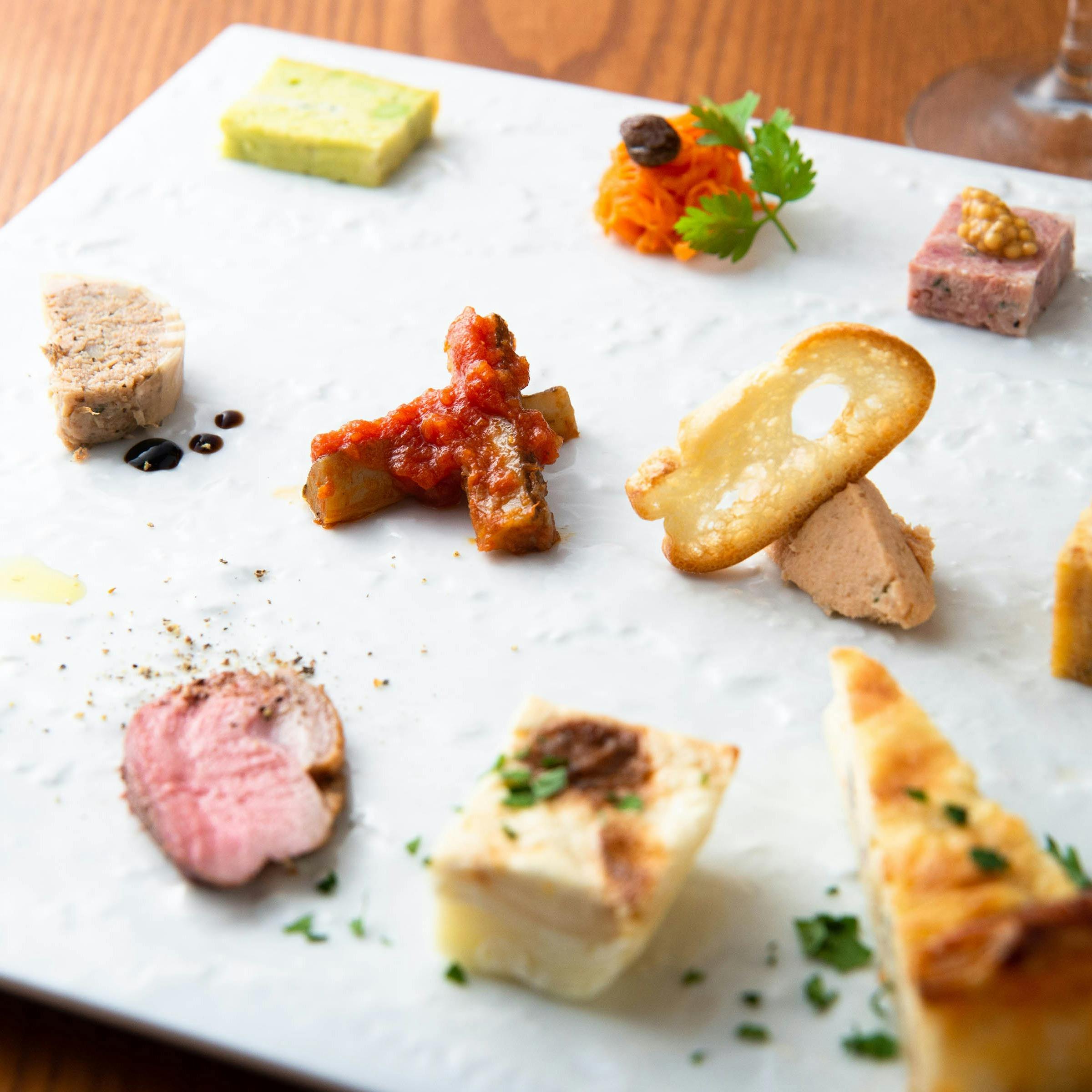 木造の蔵を改装した、和と洋の魅力が折り重なる空間で、本格イタリア料理をご堪能いただけます。黒漆喰の壁や、梁が見えるデザインの2階には、それぞれ4名様・6名様の個室もご用意しています。毎日市場で目利きした厳選食材を使用した、逸品を、ワインにこだわるシェフが厳選した、世界の絶品ワインと共にお愉しみください。