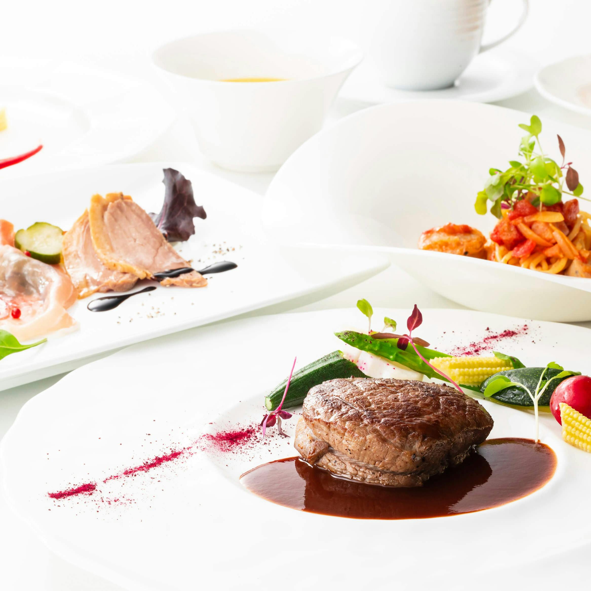 地産地消推進登録店として、群馬県産食材を中心に皆さまに食べる歓びをお届けいたします。広々としたフード台にはオードブル、サラダ、スープ、ドリンクバーなどのブッフェスタイルも充実。40名収容の個室を含め大小4つの個室は様々なパーティーシーンに対応いたします。