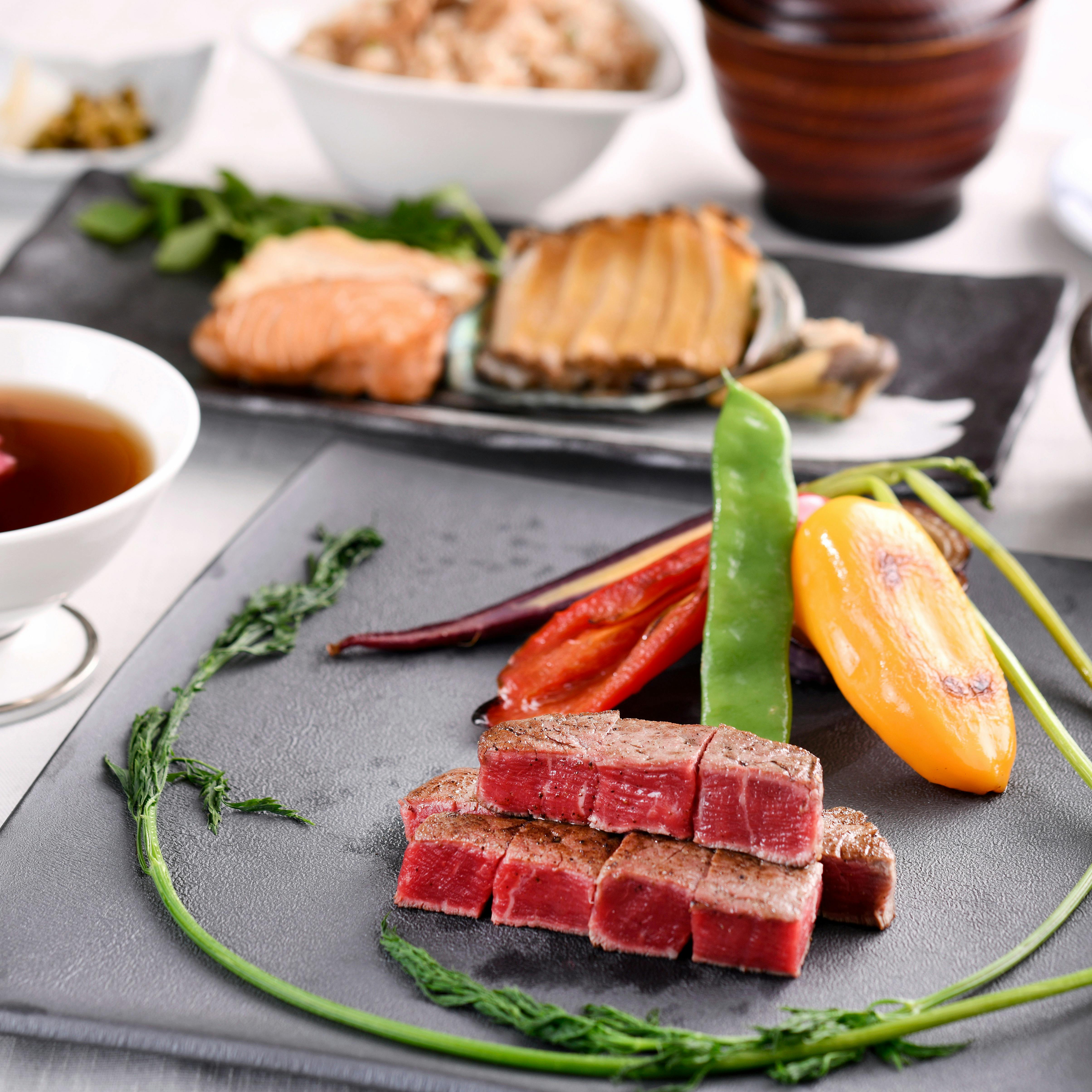 選りすぐりの黒毛和牛を存分にご堪能いただけると共に、海の香り漂う魚介類、みずみずしさ溢れる旬野菜など、お好みの焼き加減に仕上げるパフォーマンスをお愉しみいただけます。シェフとの会話を楽しみながら「焼きの温度」にこだわった、五感に響くお料理を、静かで落ち着きのある「銀杏」であなただけの贅沢な時間をお過ごしください。記念日や特別な日のご利用にもお勧めです。カウンター以外にテーブル席もございますのでご接待やご家族の記念日にも最適です。
