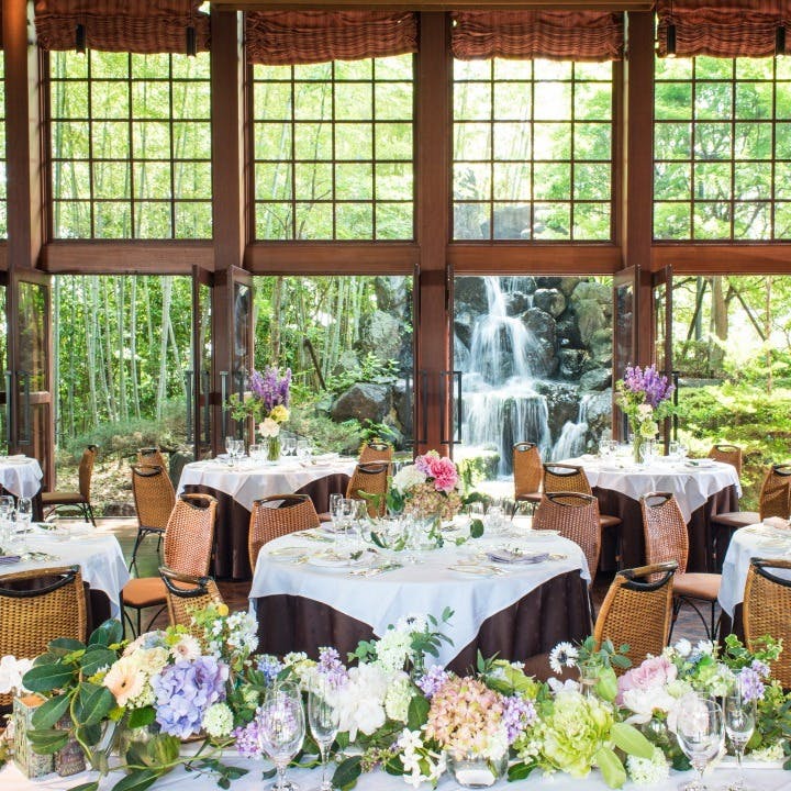 2000坪の敷地内に広がる緑あふれる別荘空間で、唯一無二の自然の恵みをそのまま感じていただける逸品をご堪能ください。名高いホテルで腕を磨いたシェフが織り成すコンテンポラリー・フランス料理でありながら、身体にやさしい有機野菜や自然農法の素材も多く使用し、幅広い年齢層の方に召し上がって頂きやすい優しい味付けのお料理を心がけております。自然溢れるリゾート空間で、どうぞゆったりとお寛ぎくださいませ。