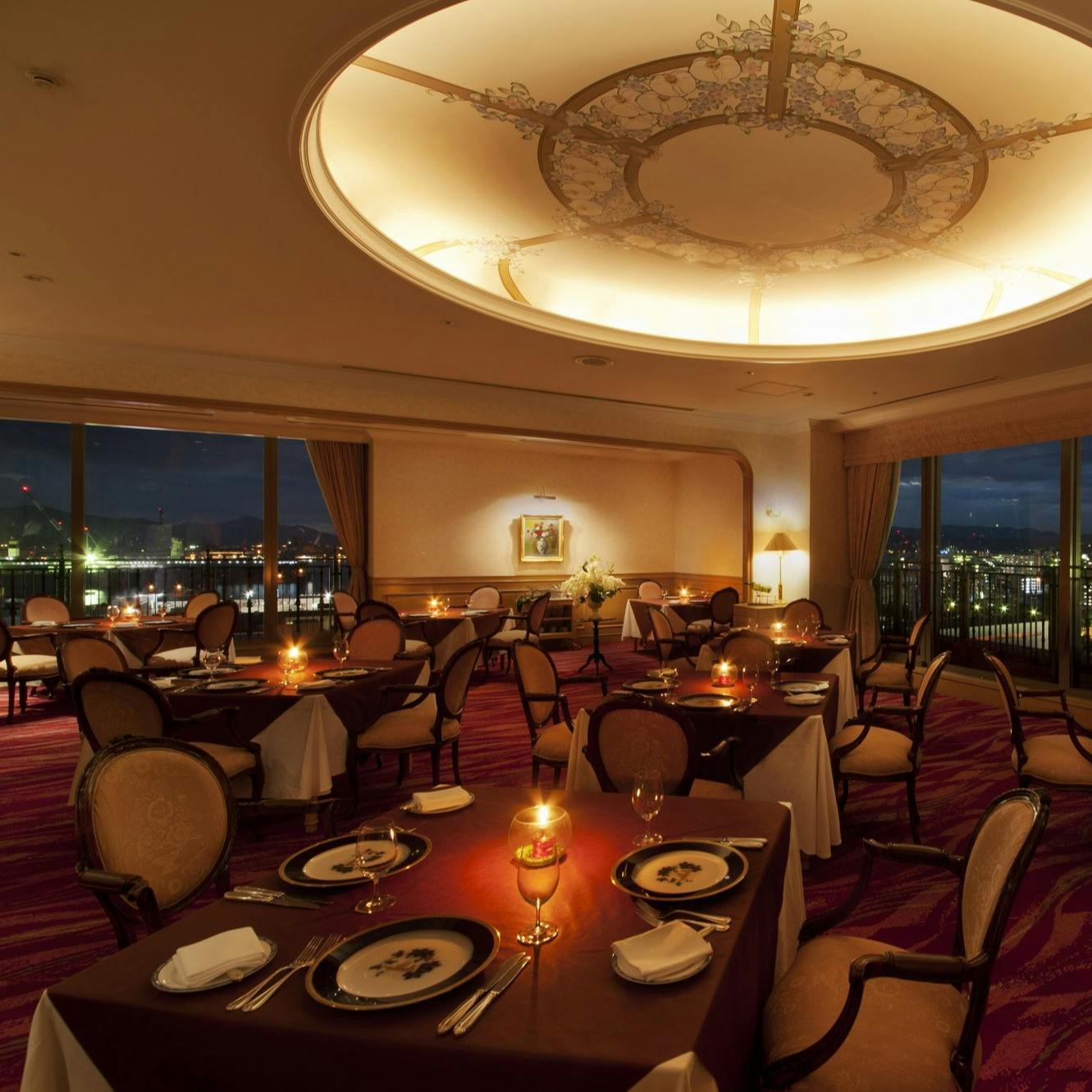 ヨーロッパ調の落ち着いた雰囲気の店内。天井には手書きで描かれた胡蝶蘭。お店のシンボルでもある船のデザインが入った大倉陶園のショープレート。上質さを醸すテーブル個室もご用意。そして何よりもシェフの想いを込めたお料理とスタッフのおもてなし。ご接待や記念日など大切な方をお連れしたとっておきのシーンに最適です。あなたの特別な日の特別なひとときのお手伝いをいたします。