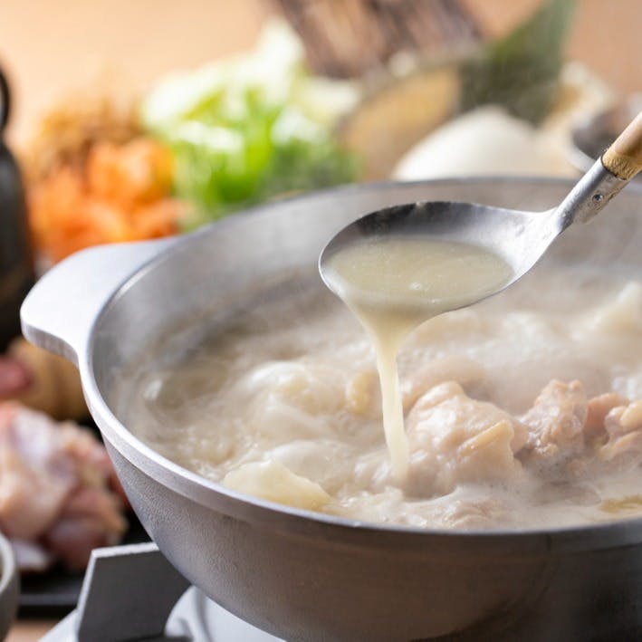 当店の水炊きは、京赤地鶏をふんだんに使った自慢の逸品です。鶏ガラをじっくり煮込んだスープは、鶏の旨味が凝縮し濃厚な味わいで、且つさらりとした喉越しで優しい味わいです。おすすめのお召し上がり方は、一杯目はそのままの味を楽しんでいただき、二杯目は塩を入れていただくのが葵流です。また、まろやかでコクのある宗田だしポン酢が、さらに素材本来の味を引き立てます。旨味が染み込んだ〆の一品は濃厚卵と、贅沢にトリュフをかけた雑炊が至極の逸品となっております。是非一度、ご賞味くださいませ。