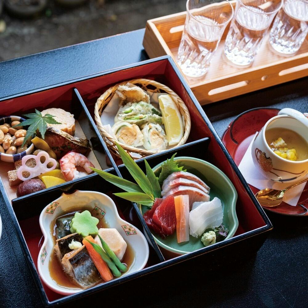 日影茶屋では、創業三百余年の旅籠時代から脈々と継承される 旬の食材を使用した日本の伝統料理と、現代に生み出される新しい創作料理を相模湾のとれたての魚介を中心に、地場産の野菜もふんだんに使用した会席料理でみなさまを心よりお待ちしております。