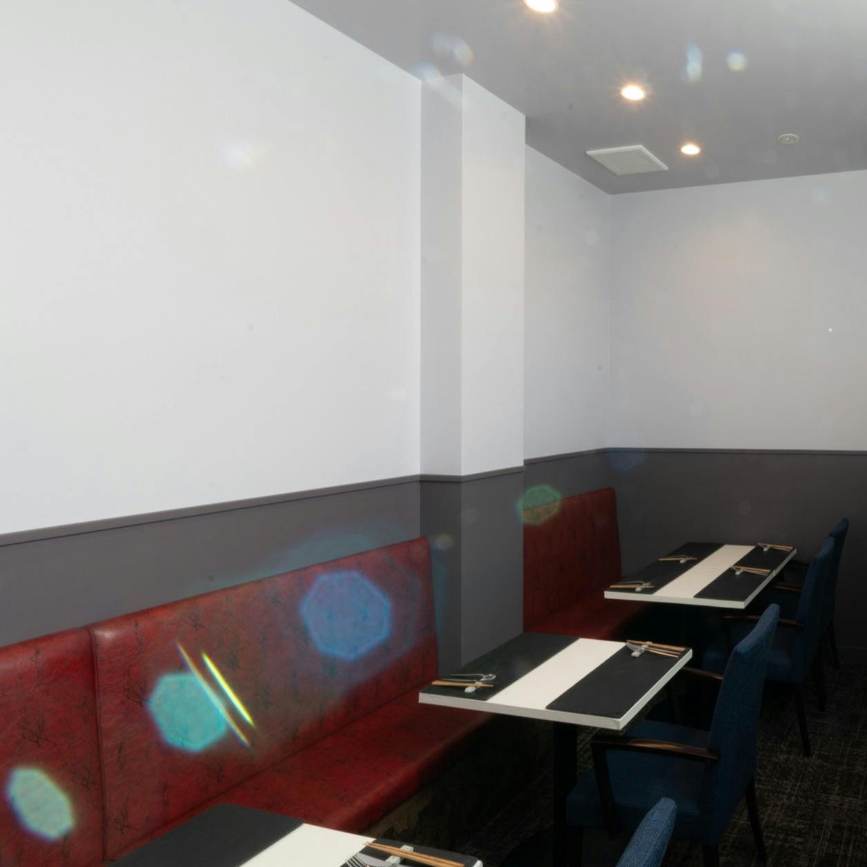 <感染症対策> ・定期的な換気 ・空気清浄機を常時使用 ・お客様同士のゆとりのある席配置 ・従業員 出勤前の検温 マスク常時着用 手洗い・うがいの徹底 ・お客様 手指消毒液の用意 ご家族、同居世帯の会食以外でのパーテーションの設置