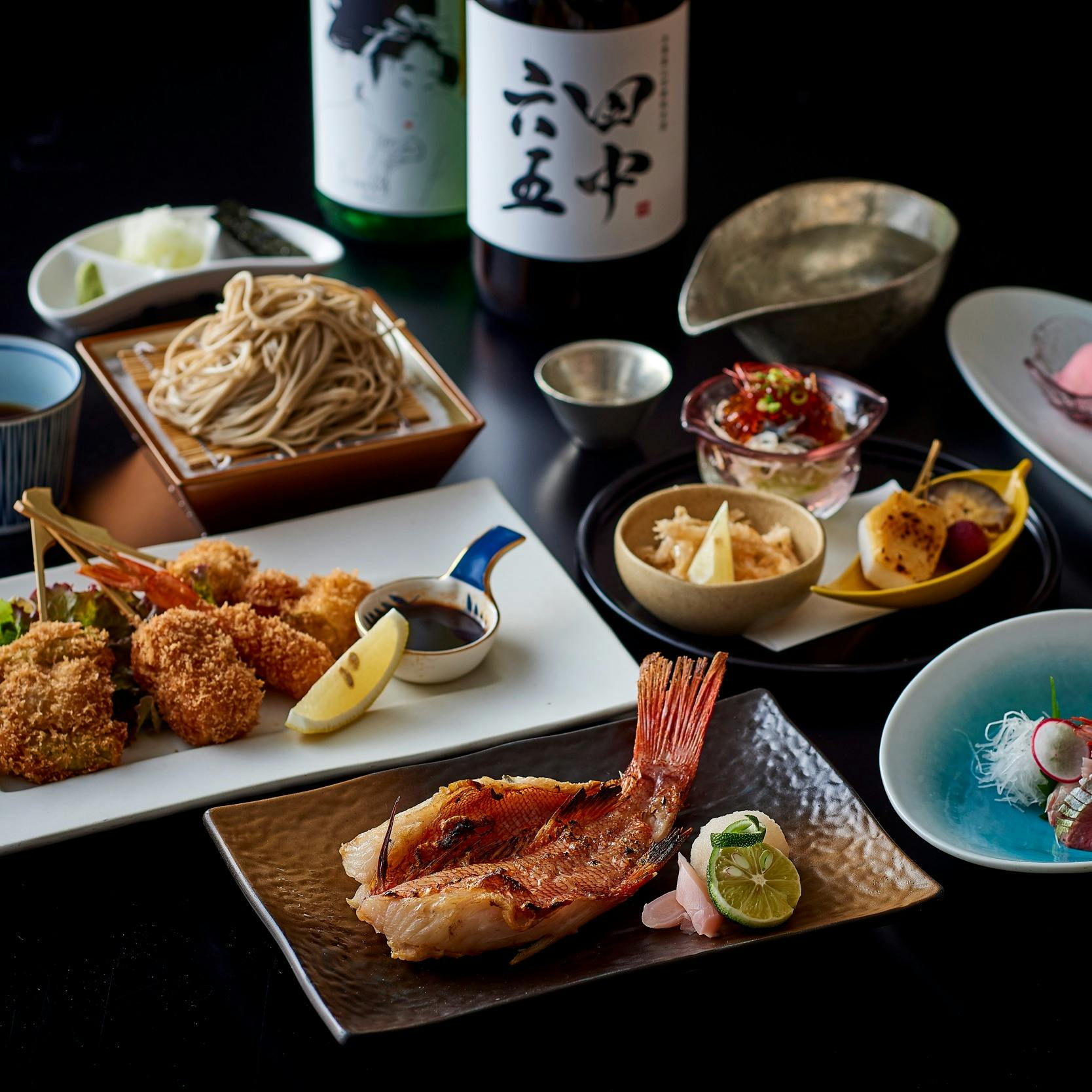 日本の伝統美を現代風に表現した料理と広々と開放感のある空間。料理長が素材を吟味したこだわりの料理をお楽しみいただけます。お手頃なご昼食メニューや炭火での炙り、鉄板料理をご用意しております。