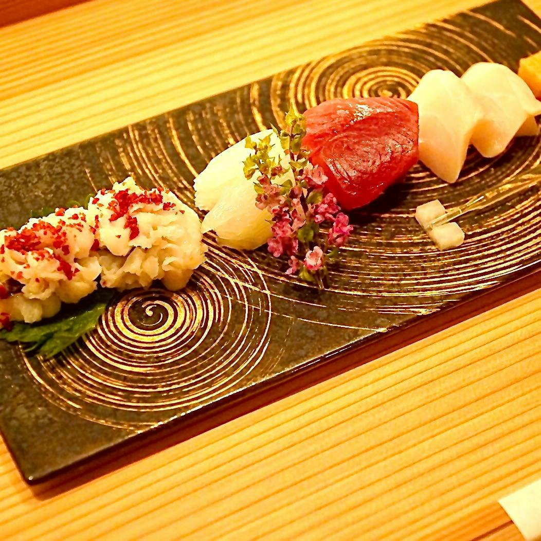 【西天満 桜会】でしか味わう事の出来ない新日本料理。伝統を重んじながらも新たな素材や技術を用いられた桜会の日本料理は、素材の本来の魅力が生かされ、目でも楽しめる盛り付けが魅力です。桜会の素材はどれも「本物」を追求した特別のオーダーメイド品です。従来の「日本料理の考え」にしばられる事なく、素材本来の魅力をいかに引き出すか試行錯誤を繰り返し、全く新しい切り口で料理を仕立てます。食材、器、空間、料理人の心意気、どれも疎かにできない大事なもの、そのひとつひとつにとことんこだわっています。