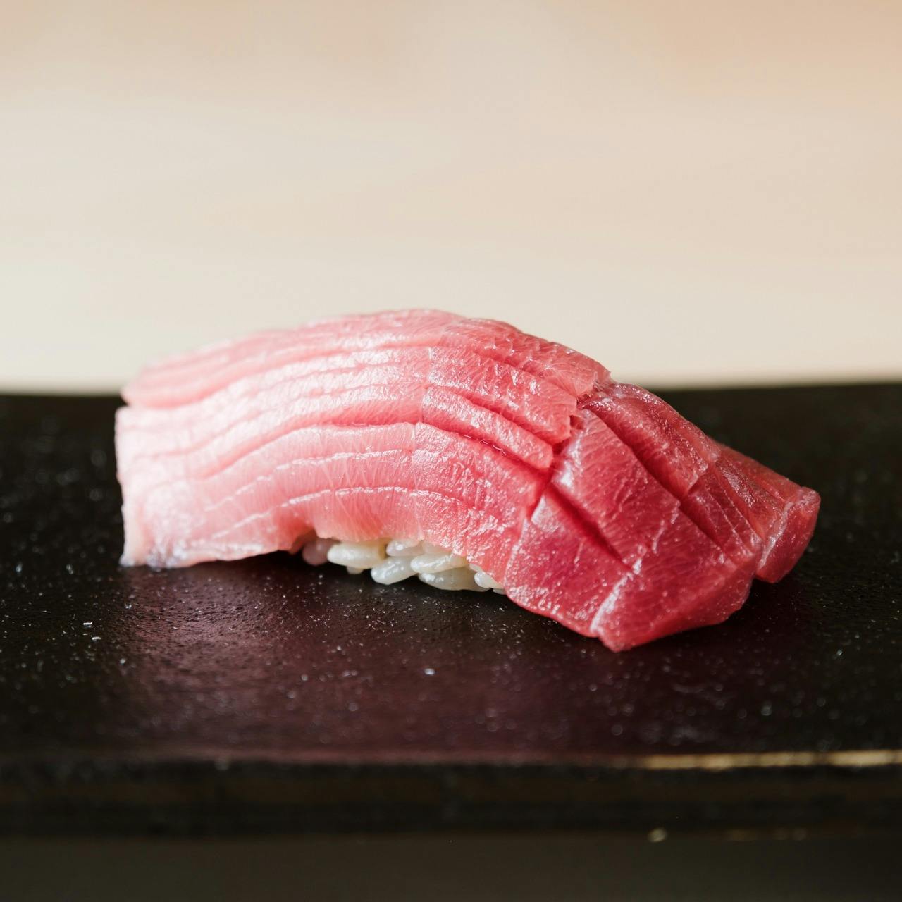職人が豊洲で朝一目利きした厳選した食材を使用。鮪は(やま幸)さんから仕入れます。シャリにもこだわりがあり、当店の鮨のためにブレンドした銘柄米と横井醸造さんから仕入れた赤酢を独自でブレンドし、合わせたもの。余計な事はせず素材の旨さを極限に出すことにこだわった本格江戸前鮨をお愉しみください。
