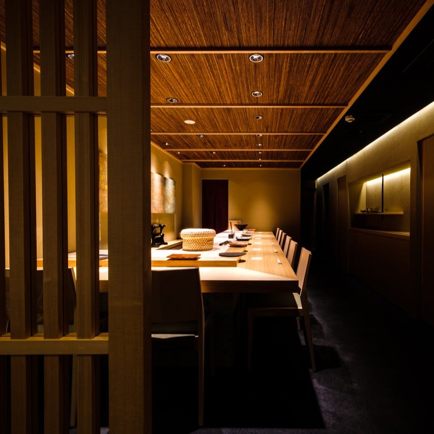 お店に入ると目を惹くのが、檜造りのローカウンター。お客様との距離と一体感を一番に考えあつらえました。お越し頂いたお客様に笑顔になって頂ける事をモットーに、最高のおもてなしをさせていただきます。接待や記念日に、ぜひご利用ください。