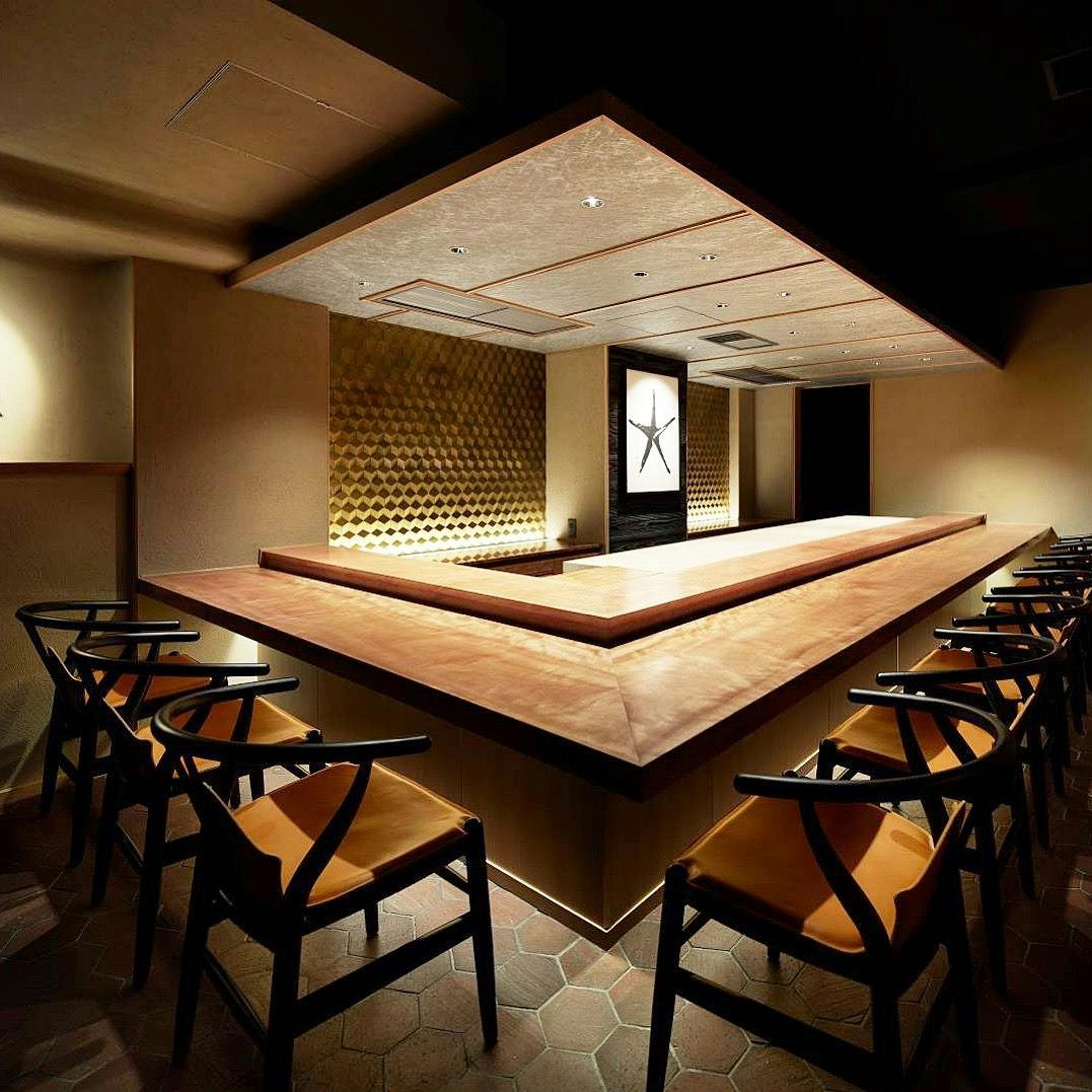 素材をいかに美味しく、旨みを引き出すかを考えています。長さ7.5mもの直線的なカウンターを活かした店内は、装飾を極限まで控えた空間。和の様式美とモダンとが調和をとり、共存しています。客席はスペースを広く取り、ゆったりとした椅子をご用意。職人の活気、本格江戸前寿司を味わいたい西麻布の大人の為の空間になっています。