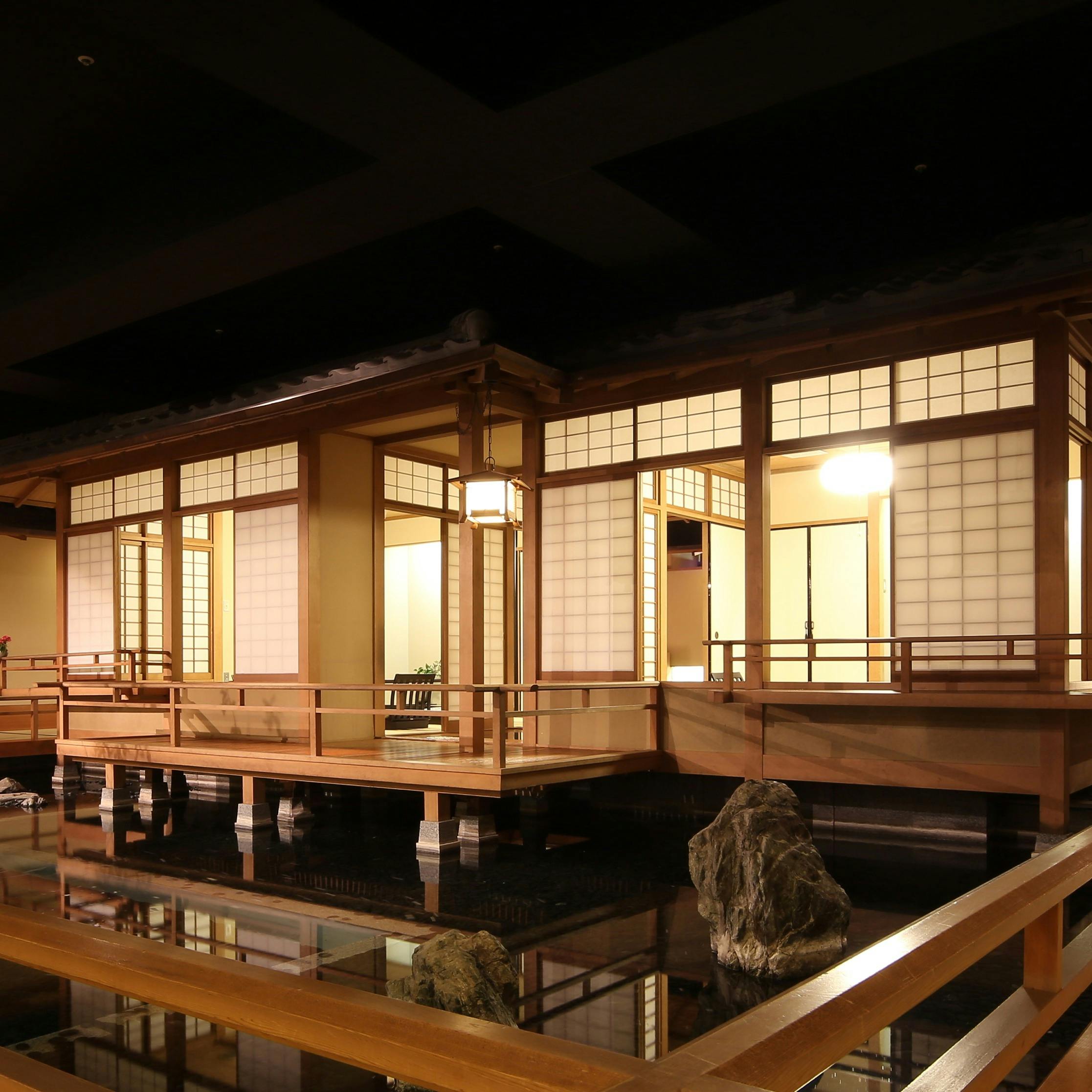SHIROYAMA HOTEL kagoshima内1階にある【割烹 楽水】。店舗内に浮かぶ池を優雅に泳ぐ鯉の姿を眺めながら、純日本調に統一された独立した個室にて大切なひとときをお過ごしくださいませ。