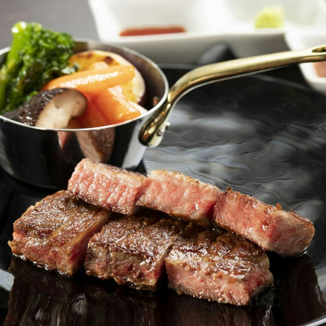 全国屈指の黒毛和牛として人気を誇る”山形牛”。当店の牛肉は美しいサシと極上の旨みを持つ素材の中でもA5、A4ランクの雌牛のみを使用しております。雌牛は脂肪がきめ細やかでさらに脂の融点が低いため、口溶けがよくとろけるような上品な味わいをお楽しみいただけます。また、シェフが熟練の技で焼き上げるステーキは、風味豊かな溢れる肉汁と肉の旨みを存分に堪能していただけます。