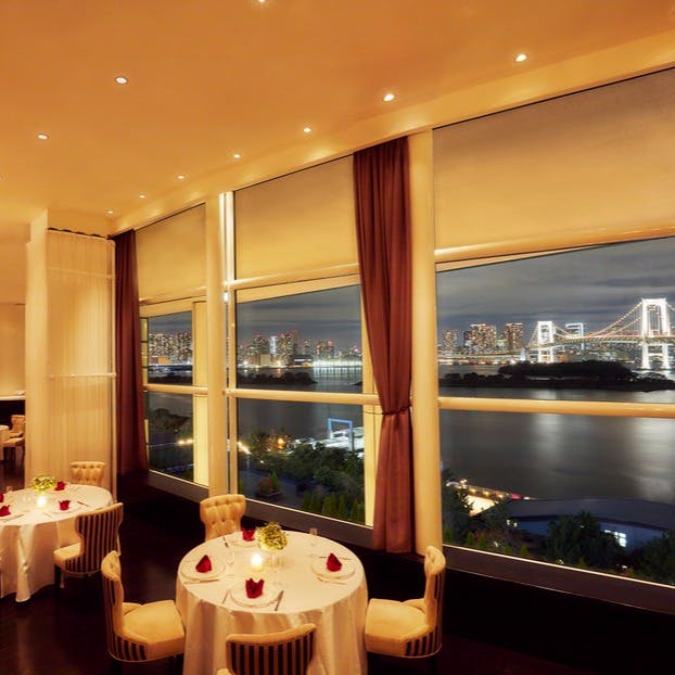 アクアシティお台場内に構える結婚式場【ザ コルトーナ シーサイド台場】が手掛けるプレミアムディナー。披露宴会場として使用されている空間を開放し、シェフパティシエが作る、世界三大珍味“フォアグラ”やローストビーフ食べ放題、結婚式場ならではの本格的なフレンチのフルコースをご用意いたしました。目の前に広がる海や東京タワー、七色にライトアップされるレインボーブリッジを眺めながら、特別な夜をお楽しみください。