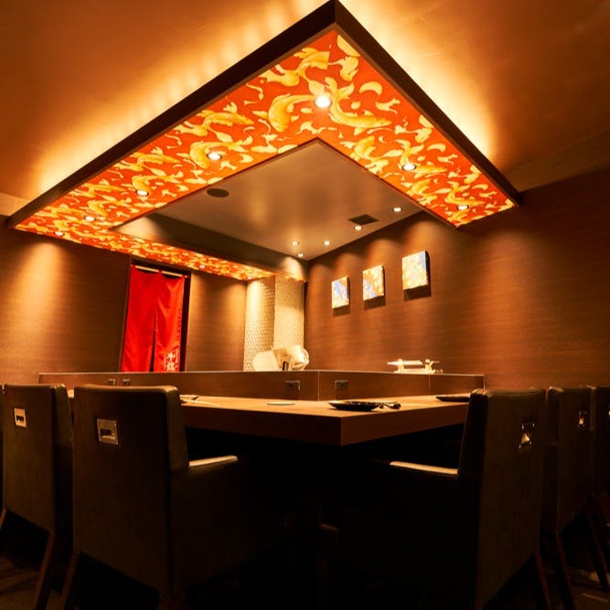 凛とした空気の満ちる店内で、潔く洗練されたカウンターと個室席をご用意しております。会食、接待などのオフィシャル利用、海外ゲストを招いての会にも最適な空間です。ぜひご利用ください。