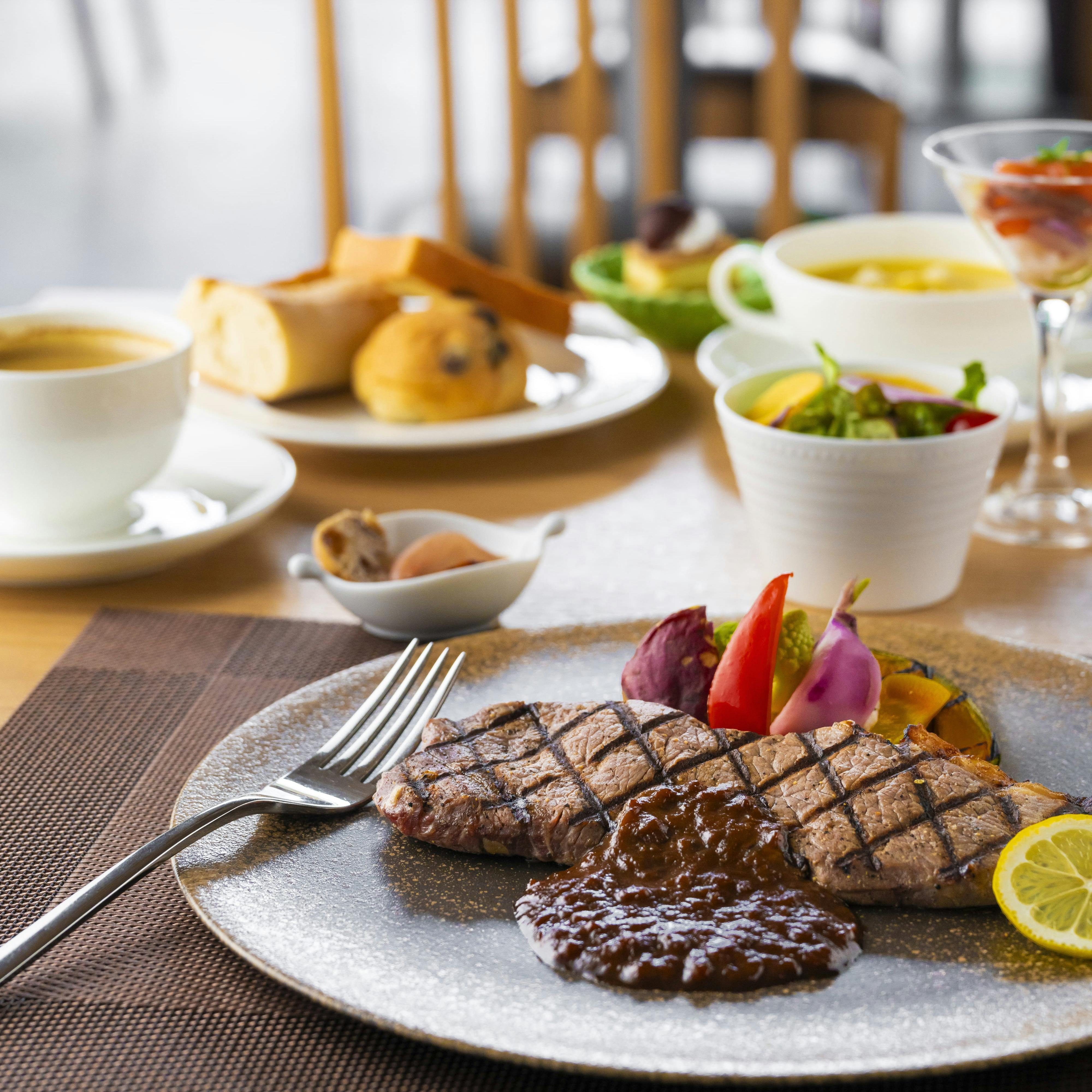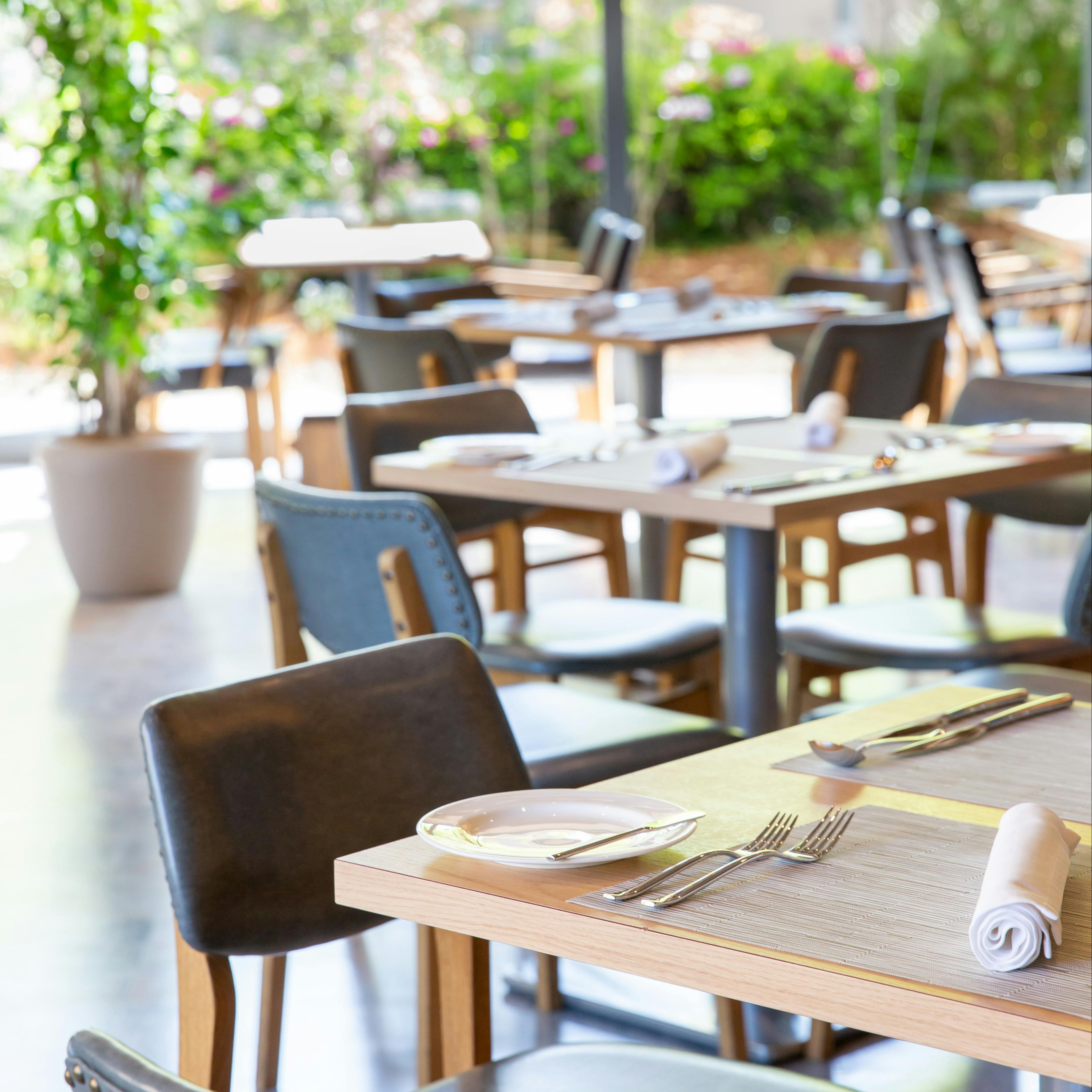 KKRホテル博多1階にある【Restaurant al camon(レストランアルカモン)】。緑と光に包まれた心地よい空間には様々なテーブル席や、そして開放的なテラス席をご用意。朝7時から利用できるモーニングブッフェに、ランチには選べるメイン料理付のランチブッフェ、アフタヌーンティーなどを楽しめるティータイム、様々なシーンに合わせてご利用いただけます。