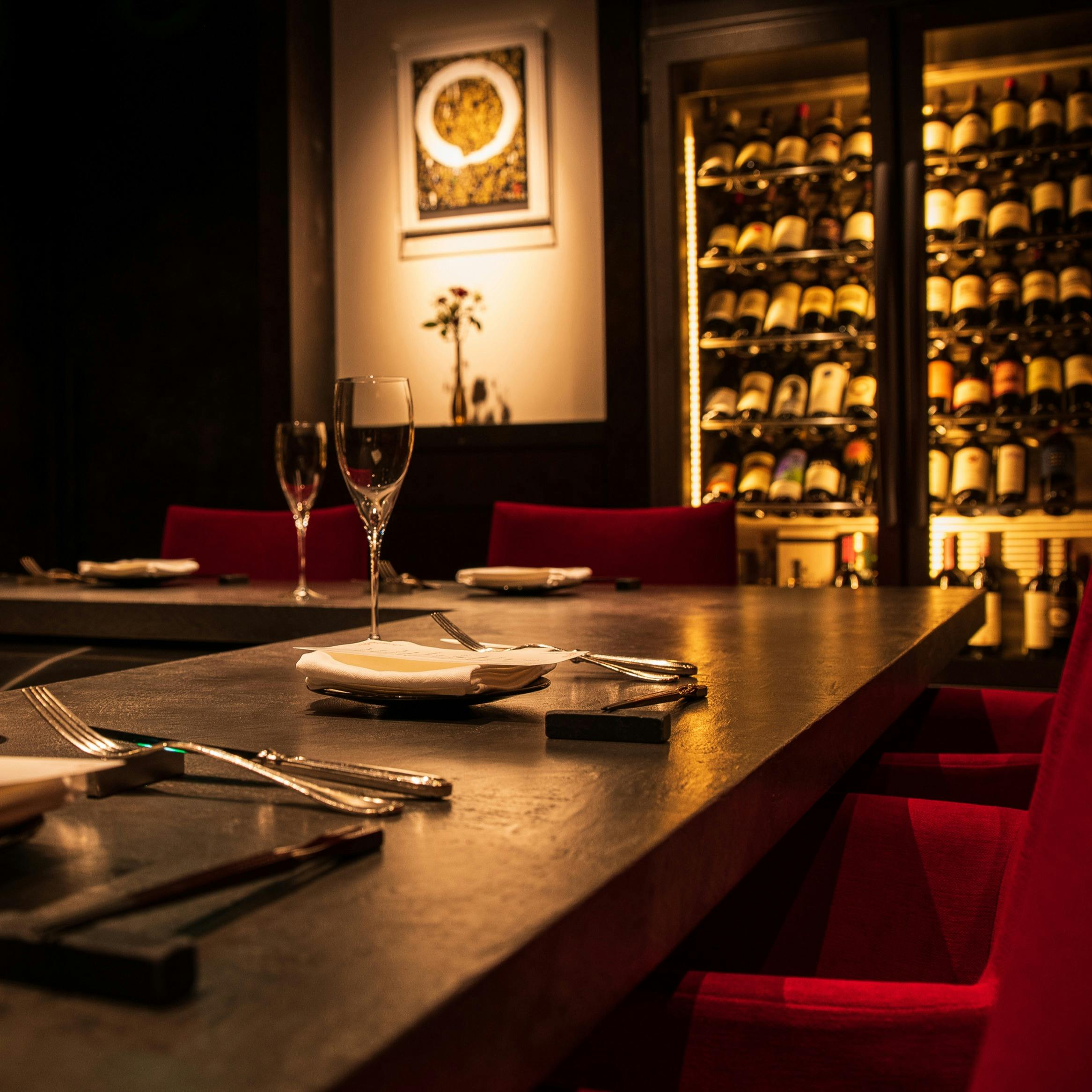 メインとなる『仙台牛炭火焼きステーキ』は備長炭を使用し、時間をかけて優しく芯温を58℃に焼き上げる事で、素材本来の味わいを最大限に高めています。シャトーブリアン、フィレ、サーロイン(日により他部位も)とコース内には様々な部位も用意されており、前菜、温菜、魚料理とフレンチをベースとした繊細な料理の数々も秀逸。世界各地のワインも仙台牛を彩ります。店内はカウンターをメインに黒を基調としたモダンな落ち着いた空間になっており、麻布十番の隠れ家的な非日常の優雅なひとときに酔いしれます。