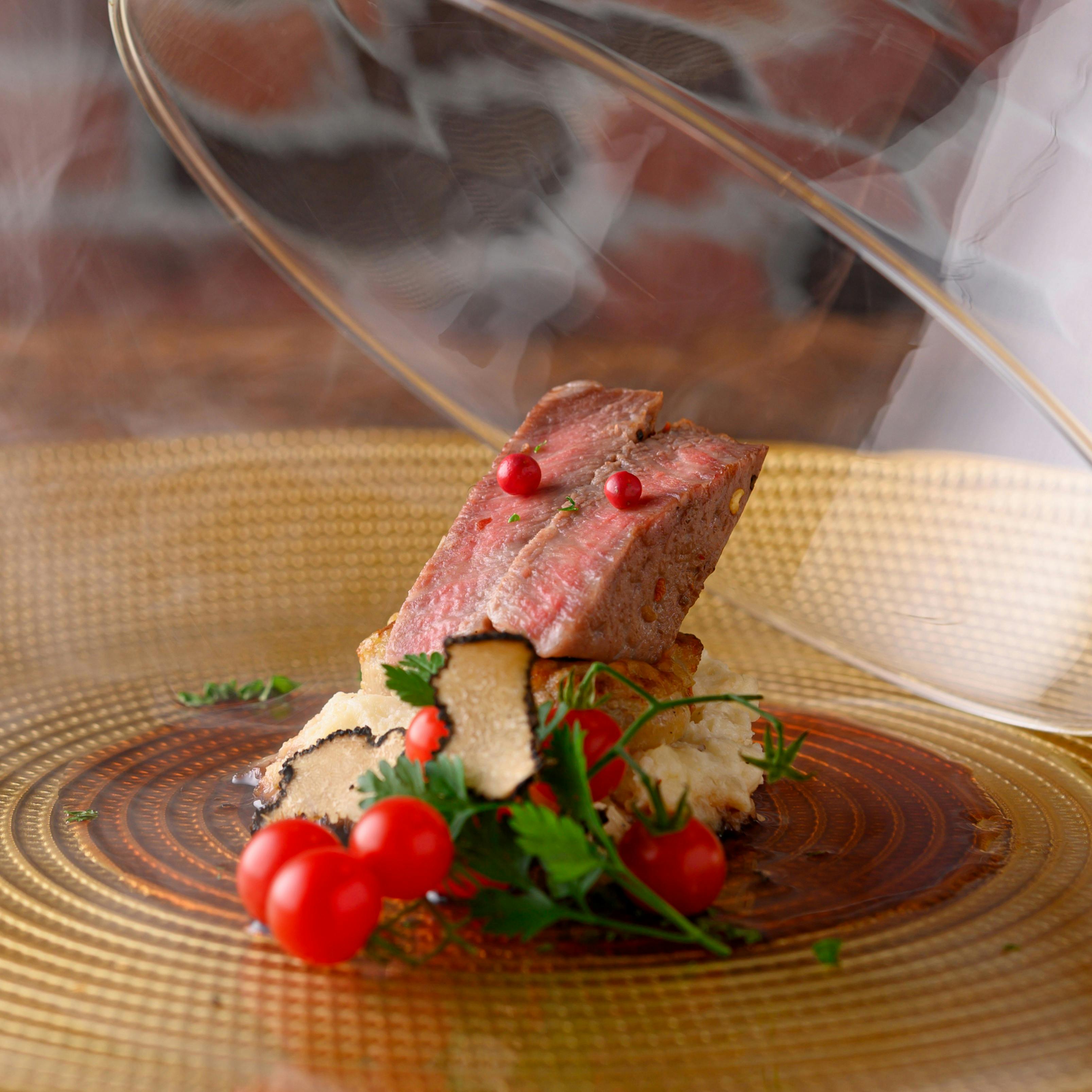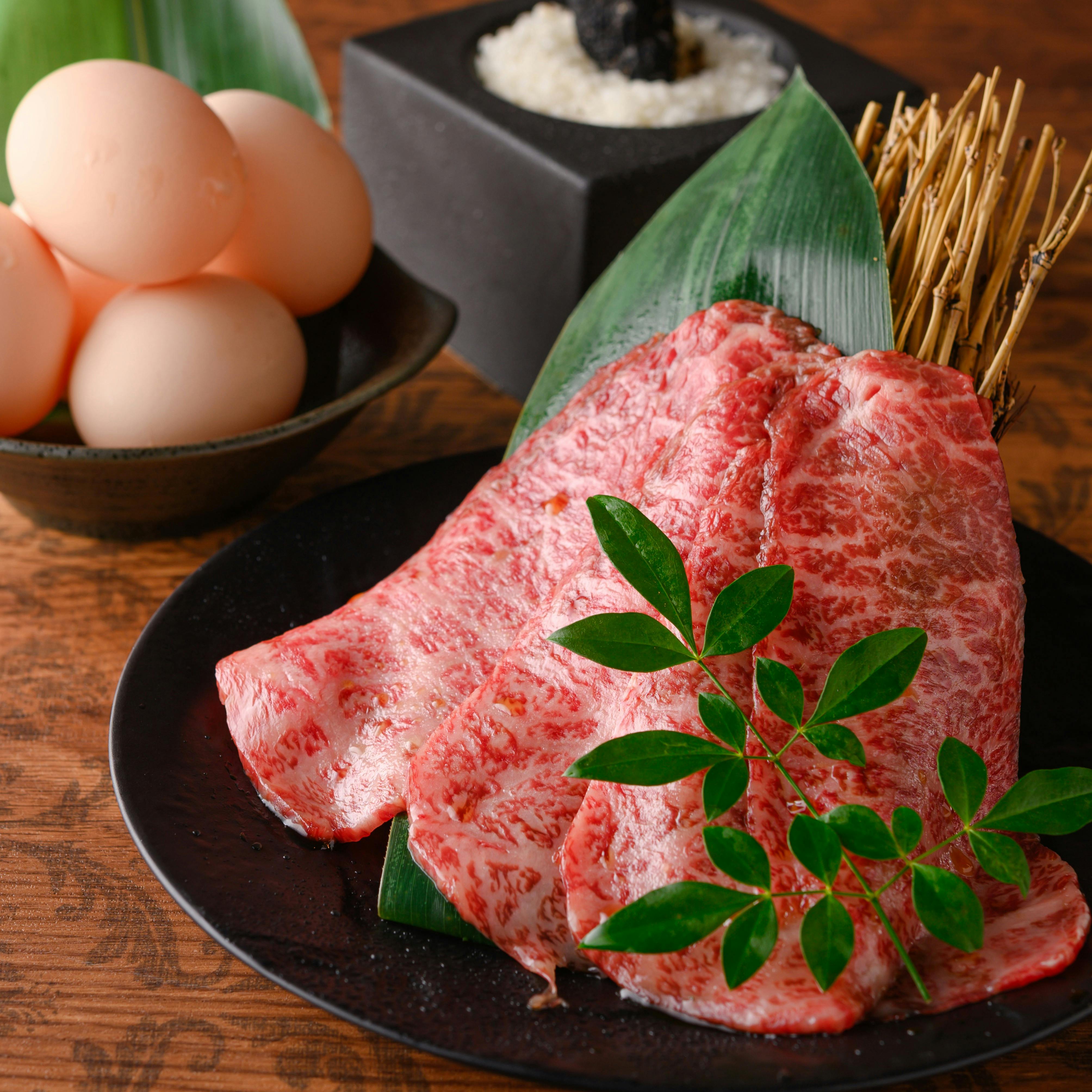 【焼肉うしどし新宿】は、新宿駅から徒歩1分。店へと続く階段を下ると、2つのエントランスが迎えてくれます。向かって左側の扉を開けると、スタイリッシュな空間が広がるメインフロア。右手はプライベート感あふれる“離れ”のようになっており、貸切利用も可能です。店の自慢は、A5ランクの黒毛和牛に代表される厳選素材。あえて産地を限定せず、本当にいい食材を仕入れるのがこだわりです。イタリアンを皮切りに、幅広いジャンルを経験した料理人佐藤が手がけるのは、五感で楽しめる一皿。宝石箱のような『ユッケ』や『豪華肉ケーキ』などはサプライズ感も満点。焼肉店でありながら洗練された雰囲気で、デートや接待にぴったりのお店です。