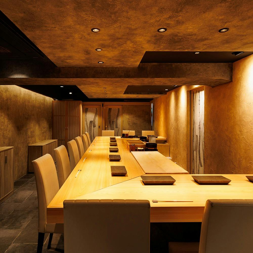 ~銀座で侘びのある凛とした空間・ベテラン店主が握る「質」と「仕込み」に一切の妥協なし本格江戸前鮨~ □カウンター席(13席) 江戸前寿司の醍醐味の職人技を目の前だ楽しめるカウンター席。 銀座に佇む和モダン空間はゆったりとした時間が流れる大人の時間をお楽しみいただけます。 □個室席(2~8名様) 特別な日やお客様の接待にも最適な個室席も完備。 風情ある店内もおもてなしのひとつ特別な一席を叶えます。
