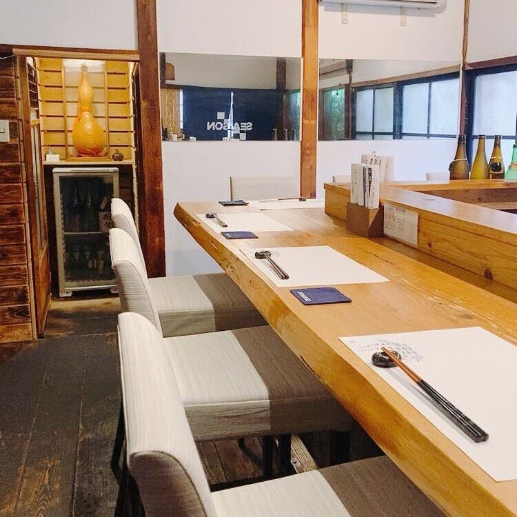 古民家風の外観が目印のこじんまりとしたお店です。カウンターは6席、2階のテーブルとゆっくりと寛げる空間。新鮮な鮮魚を使用した季節ごと、日替わりで変わるメニューをご用意しております。豊富に取りそろえる日本酒と 合わせてお愉しみください。皆様のご来店をお待ちしております。
