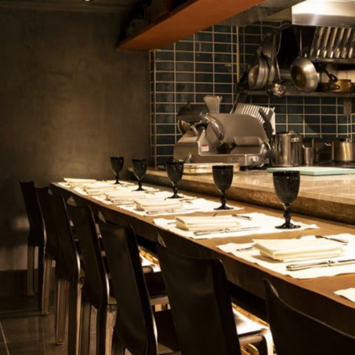イタリア料理界を長年牽引してきた巨匠山田宏巳が、赤坂にこじんまりとした自店をオープン。一ツ木通りから一歩入った雑居ビルの3階。扉を開ければ、どこか密やかな空気の漂う美食の空間が広がります。繊細な技と自由な発想から生まれる料理の数々をお愉しみください。