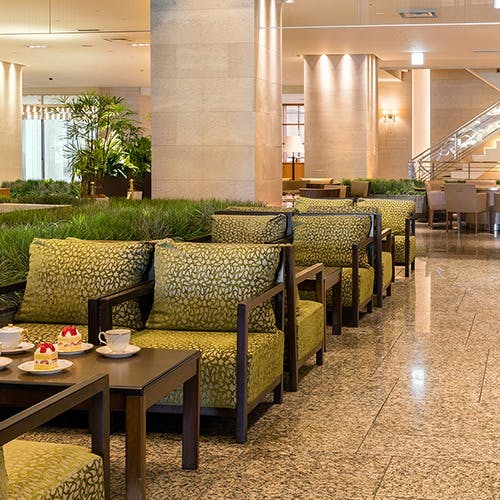 香り豊かな紅茶、ハーブティーなどバリエーション豊かなお飲み物やホテルメイド皆様のご来店をお待ちしております。のスイーツを数々ご用意する、ロビーの一角にある憩いの空間です。