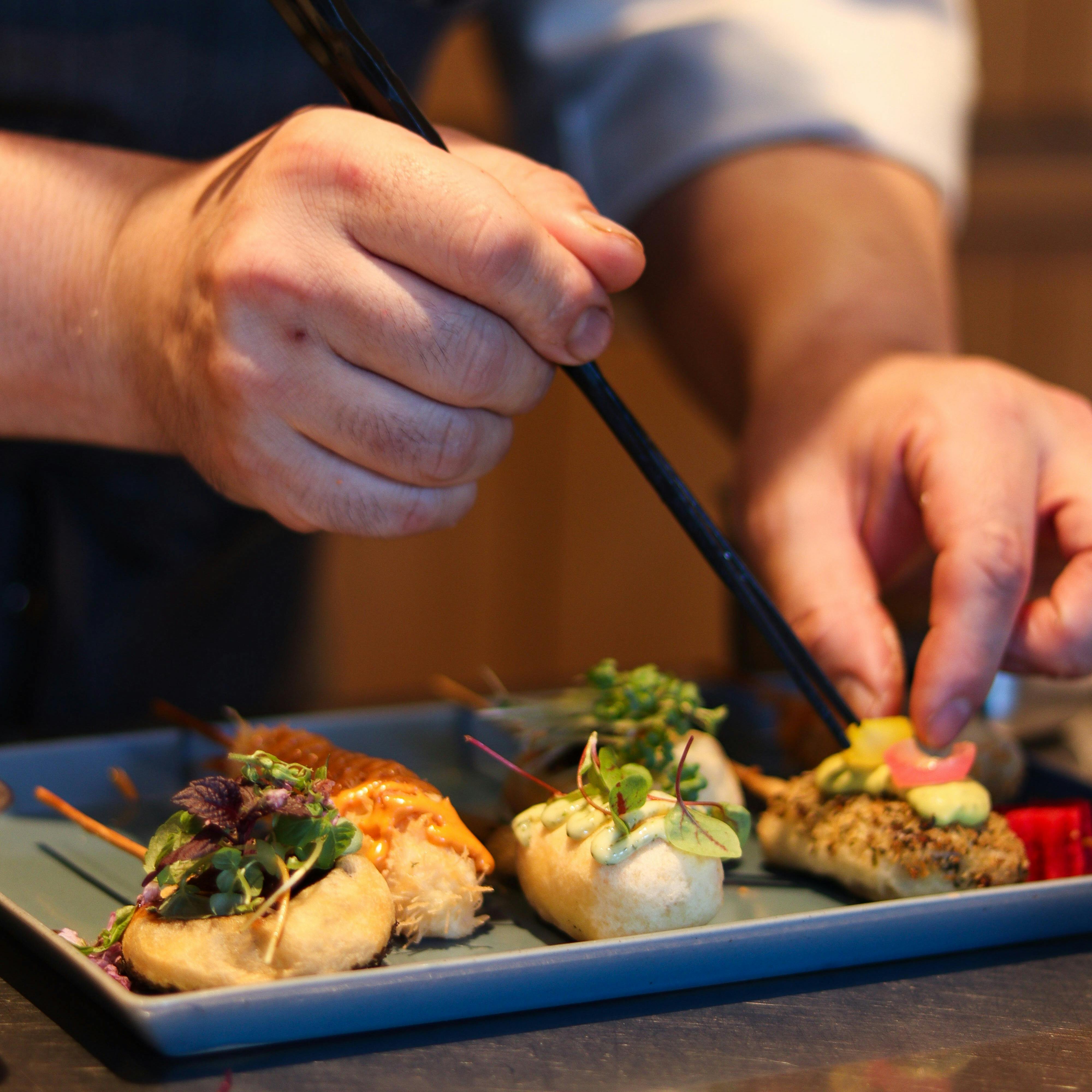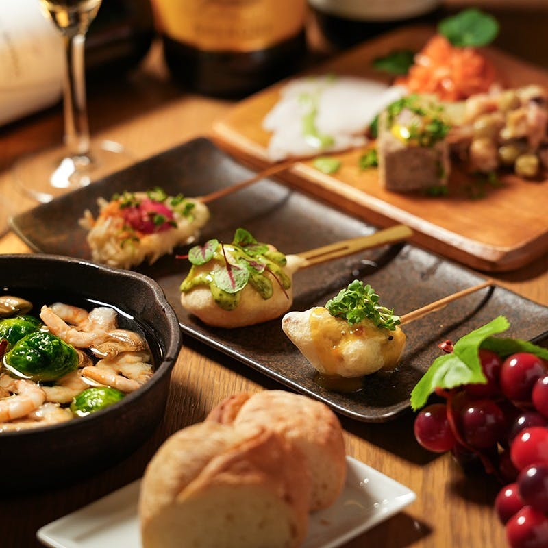 フレンチを右手に、ワインを左手に。 フレンチと串揚げの融合。 ミシュラン2つ星の名店出身のシェフが新たに手掛けるカジュアルフレンチ。 しっぽりでも、ワイワイでも。神コスパで味わえる「丁度良い」フレンチがここにある。