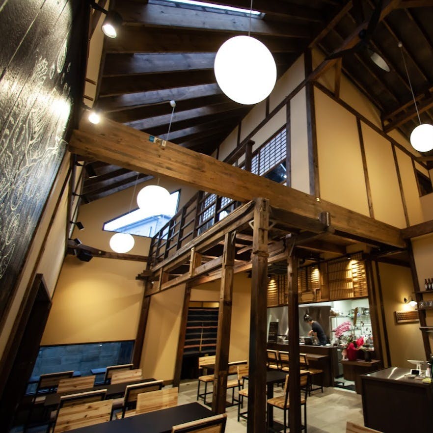 南草津の精肉店[サカエヤ]から入荷する近江牛や熟成肉を、高島[みのり農園]など地元で採れた野菜と共に、食欲をそそる香ばしい炭火焼きに。自然(jinen)の恵みを、ありのままにシンプルに召し上がっていただきます。締めにはホールスパイスから独自の調合で手間暇かけてつくる本格スパイスカレーも。自然派ワインを中心に、ブルゴーニュやナパバレーなど様々な産地の芳醇なワインを片手に優雅なひとときをお楽しみください。築100年の古家を再生した吹き抜けの大空間で、みなさまのご来店をお待ちしております。