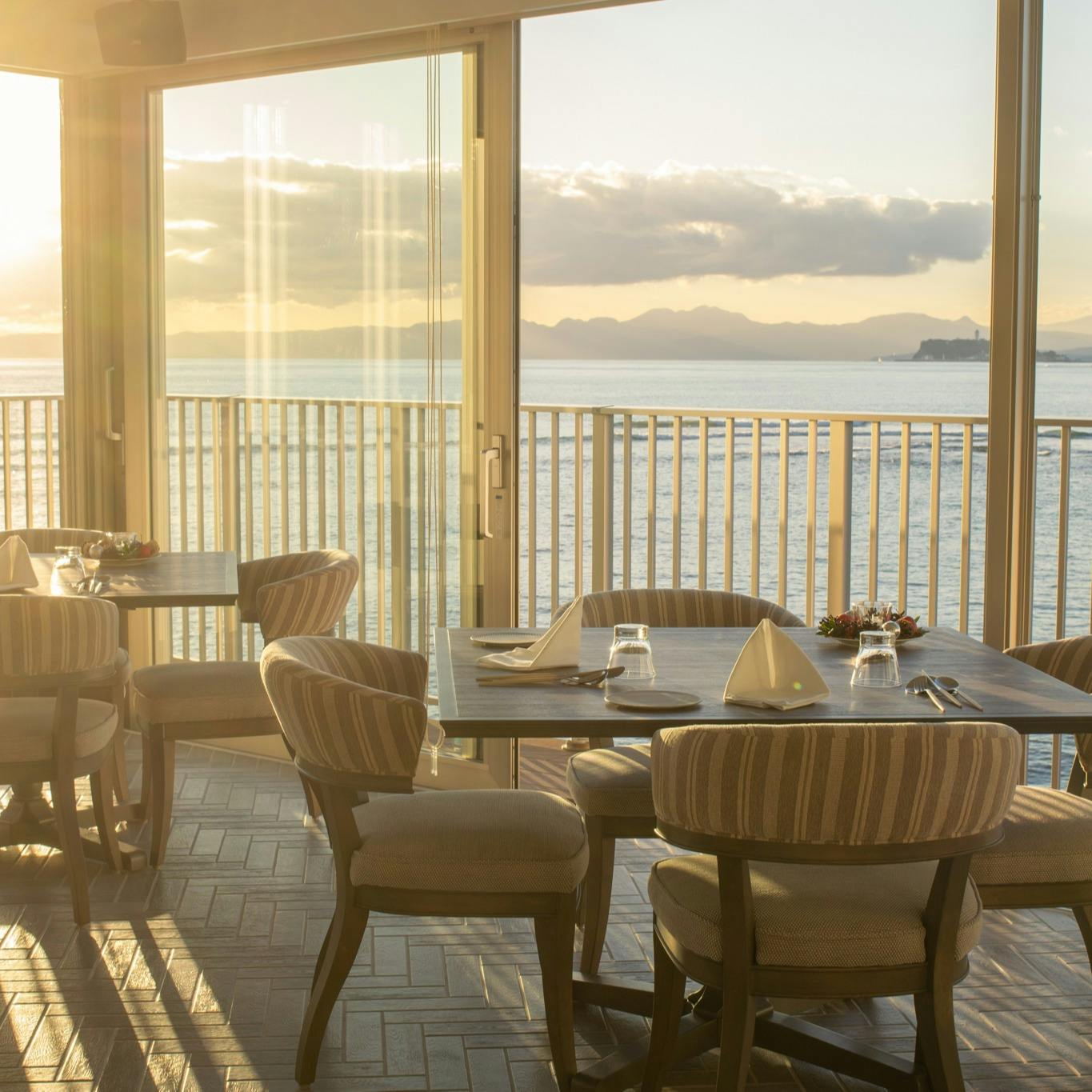 日本最古の築港遺跡を眼下に材木座を一望でき、全席オーシャンビューで富士山や江ノ島を窓外に眺めながらお食事を楽しめるザハーバーテラス。 春先から秋口までは窓を開け、開放感のある空間で波音を聞きながらお食事ができ、秋晩から冬場になると澄んだ空気になり景色をより一層綺麗に見渡せます。 近隣農家の野菜を中心に、厳選された新鮮な食材を集め、心も体も嬉しいフランス料理をご提供します。